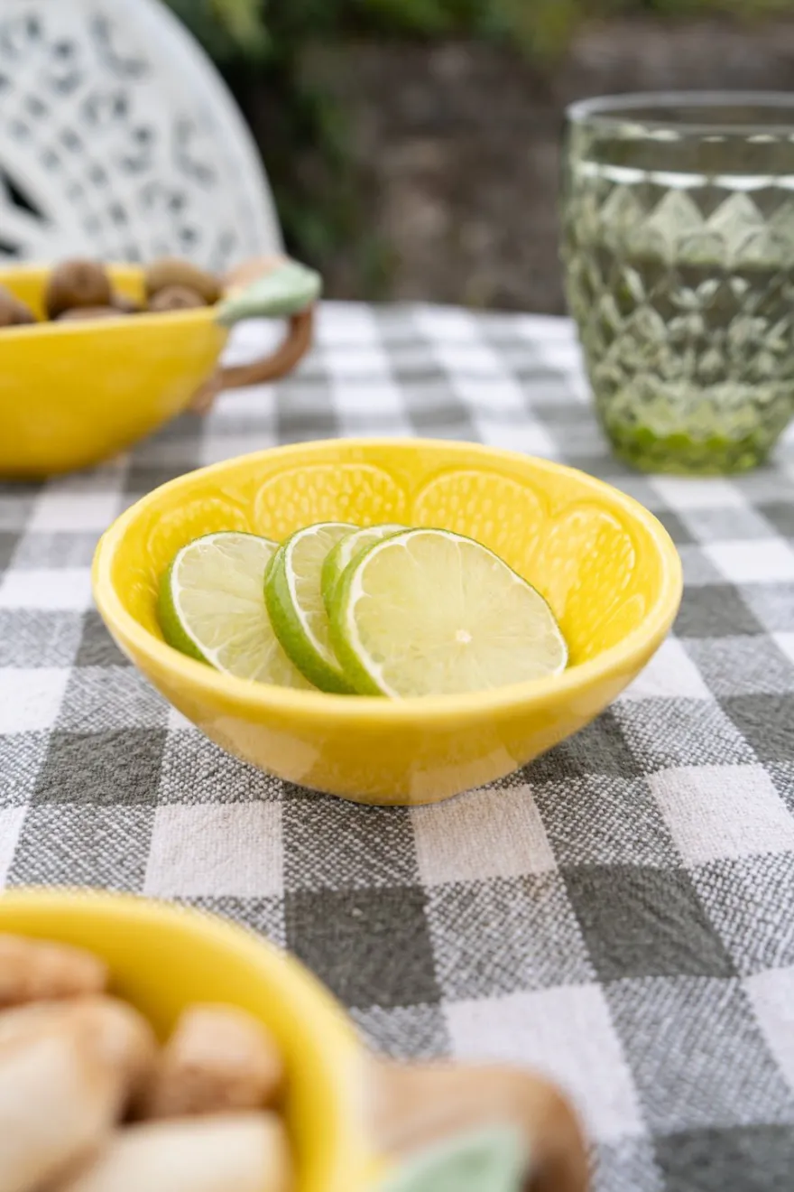 Mini cuenco de cerámica con diseño de limón pintado a mano. Dale color, frescor y un toque artesanal a la decoración de tu mesa.