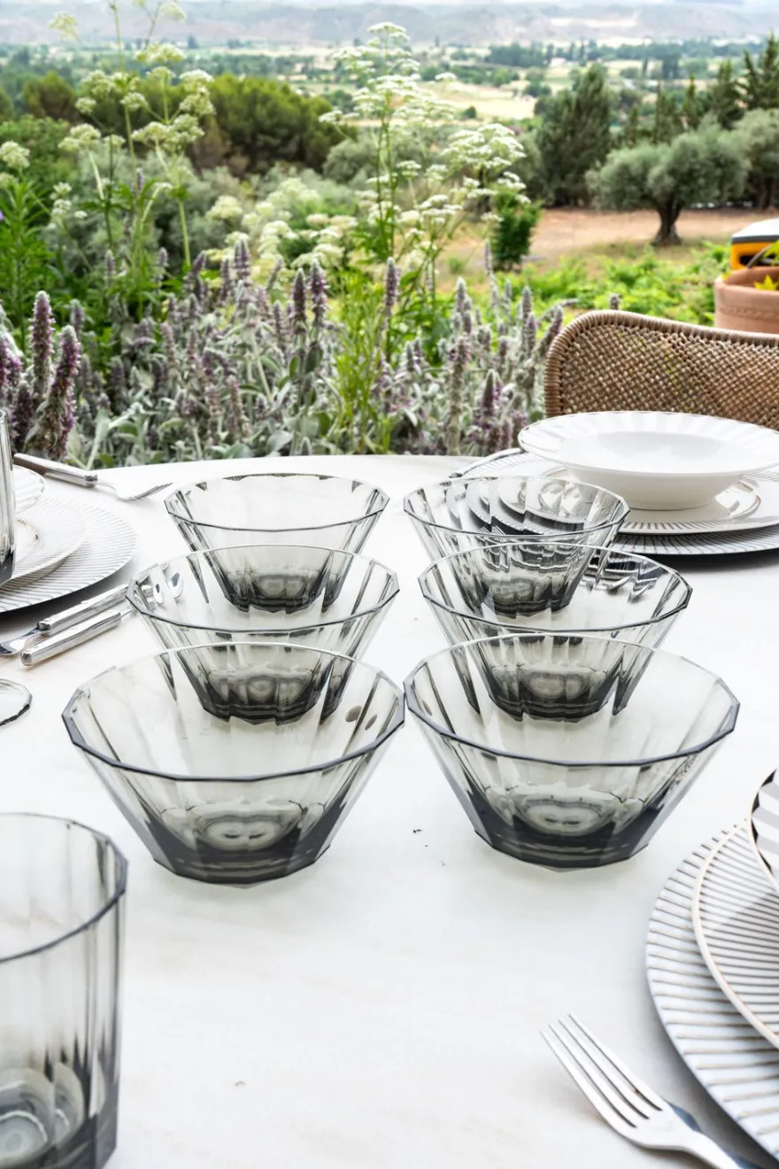 Set de seis cuencos de nuestra cristalería acrílica en tono gris que combina el aspecto del vidrio con la durabilidad del acrílico.
