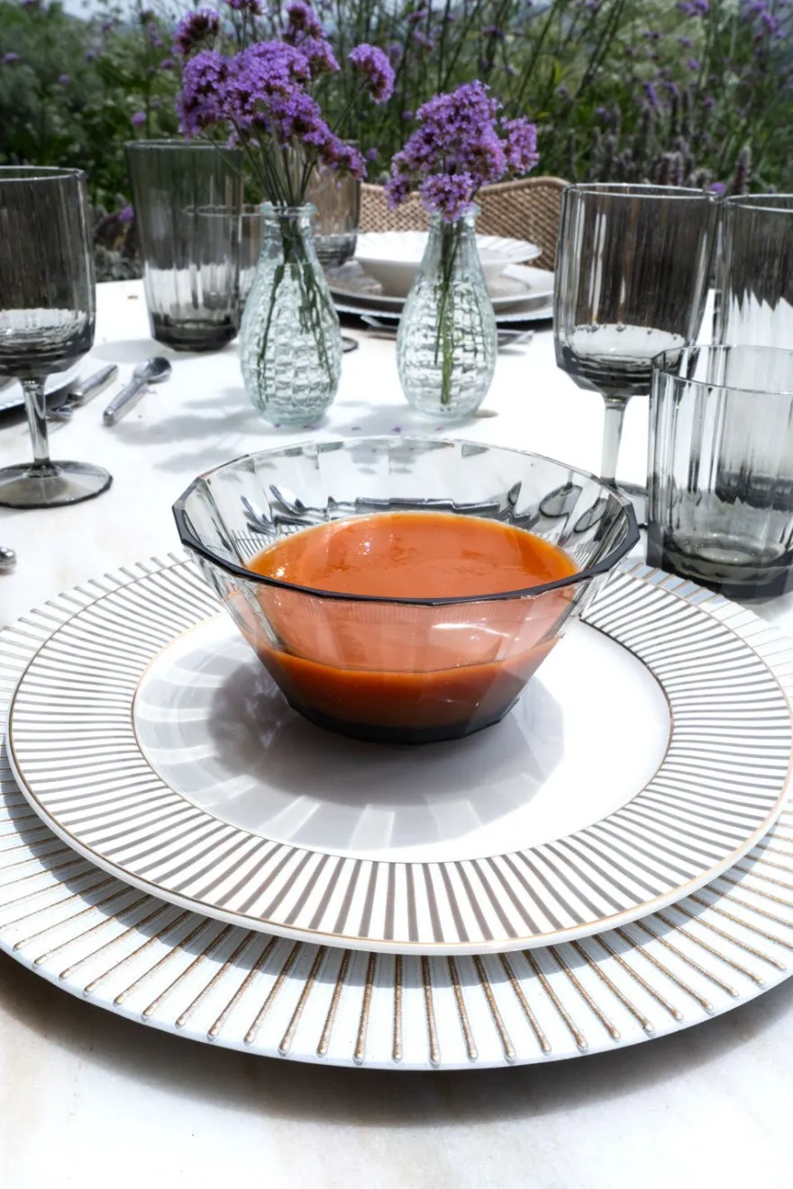 Su acabado translúcido aporta elegancia sutil, mientras que el material resistente y ligero la hace perfecta para el uso diario o reuniones al aire libre.