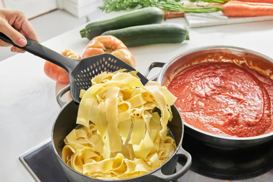 Escurridera en color negro perfecta para pasta y verduras.