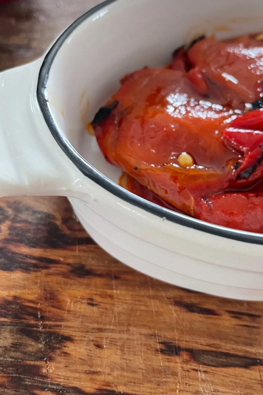 Fuente ovalada de cerámica pequeña en color blanco y con borde negro.