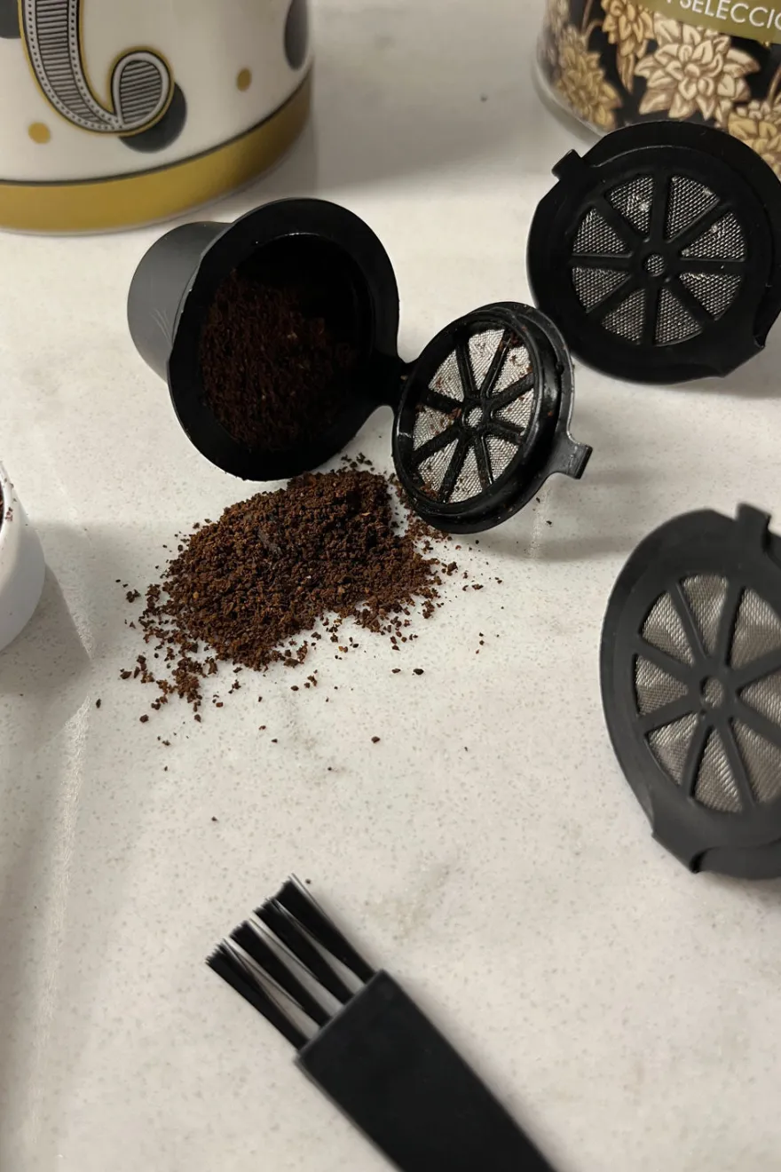- Llenar 2/3 de la cápsula con café molido