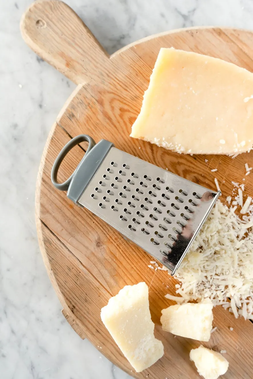 Rallador de acero inoxidable y mango de plástico, con cuatro caras distintas para poder rallar: fino, medio, grueso y virutas.