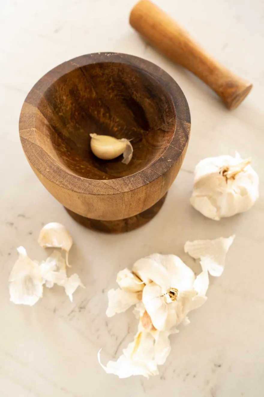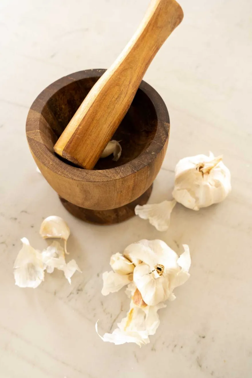 Prepara tus condimentos con este mortero de madera de acacia.