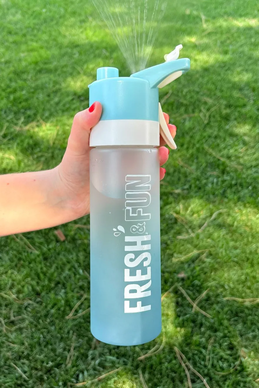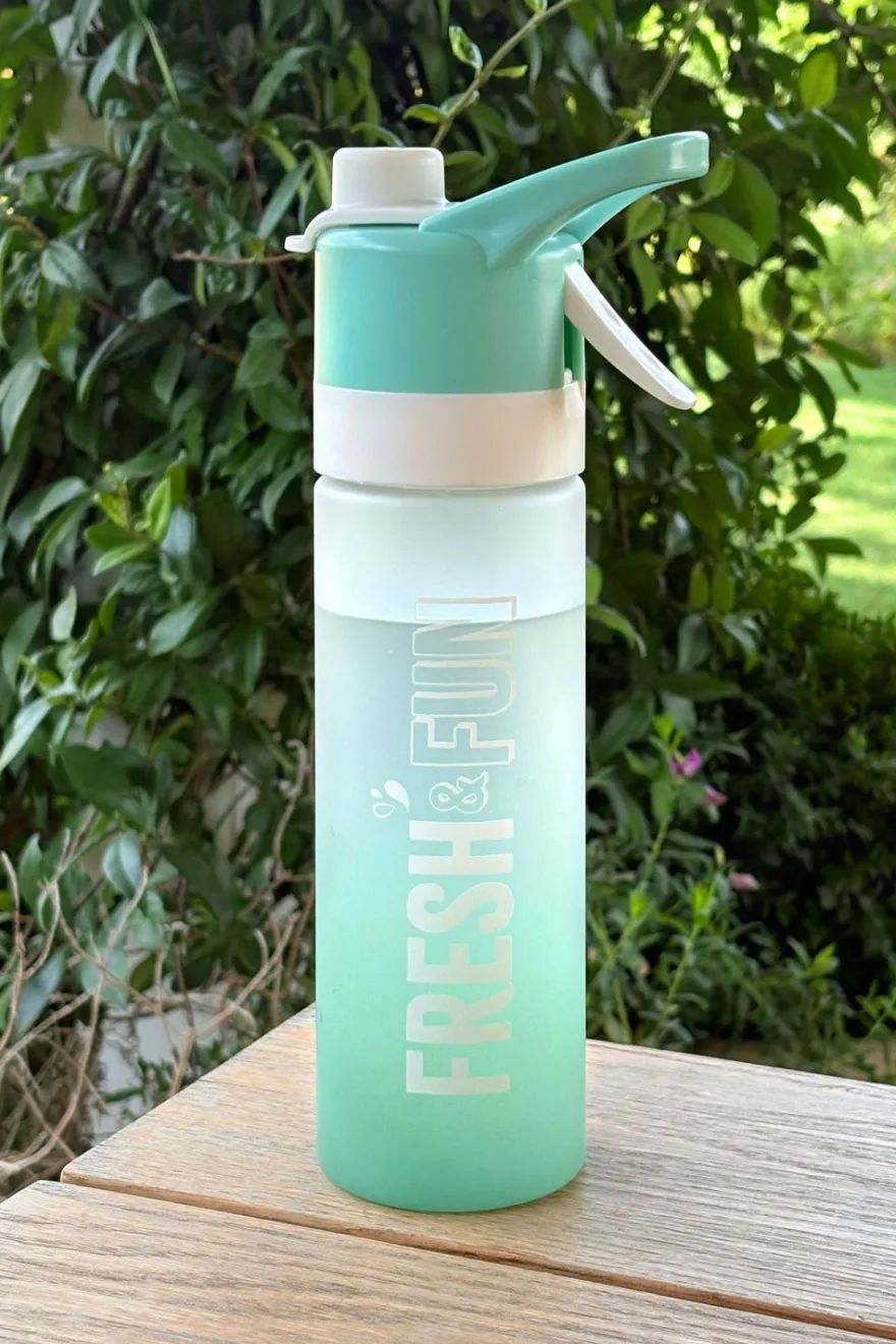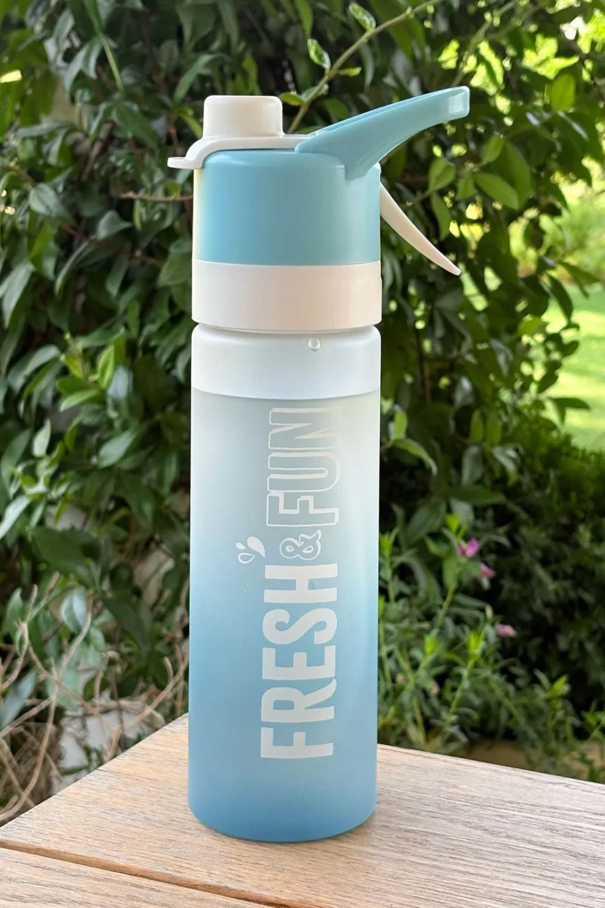 Práctica y versátil, esta botella de agua incorpora un pulverizador integrado que permite refrescarte con una fina bruma en cualquier momento. Ideal para días calurosos, actividades al aire libre, deporte o simplemente para mantenerte fresco mientras te hidratas.