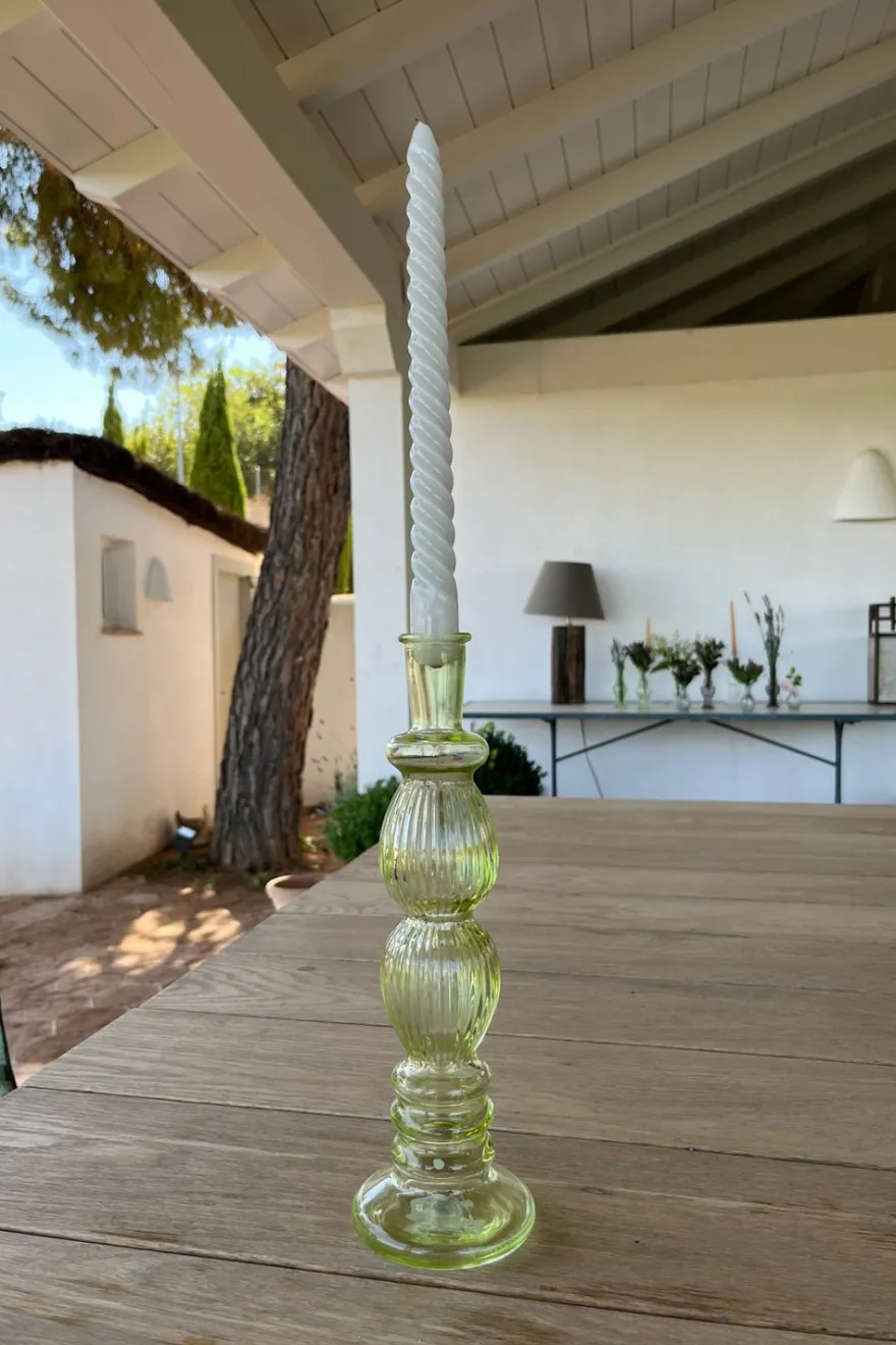 Florero de cristal verde claro, ideal para complementar y dar un toque fresco, original y diferente a cualquier rincón de tu casa. Puedes llenarlo con flores, usarlo como portavelas o simplemente para decorar sin nada en su interior.