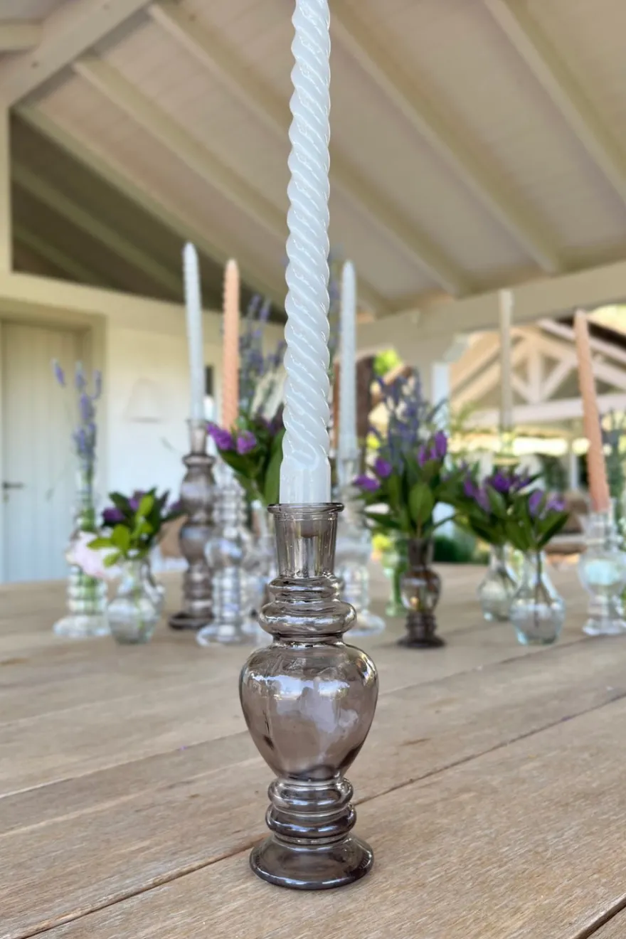 Florero de cristal gris, ideal para complementar y dar un toque fresco, original y diferente a cualquier rincón de tu casa. Puedes llenarlo con flores, usarlo como portavelas o simplemente para decorar sin nada en su interior.