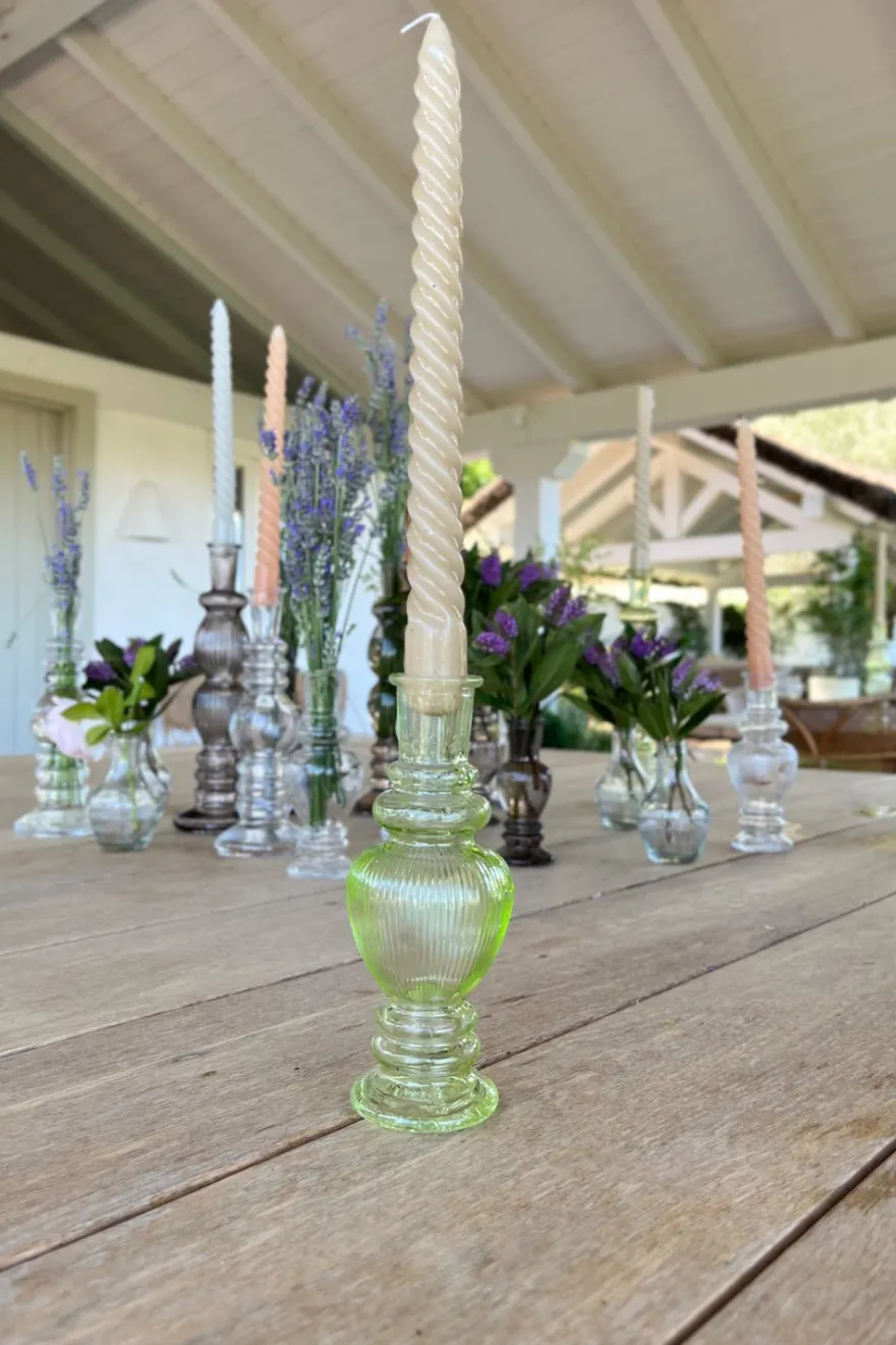 Florero de cristal verde claro, ideal para complementar y dar un toque fresco, original y diferente a cualquier rincón de tu casa. Puedes llenarlo con flores, usarlo como portavelas o simplemente para decorar sin nada en su interior.