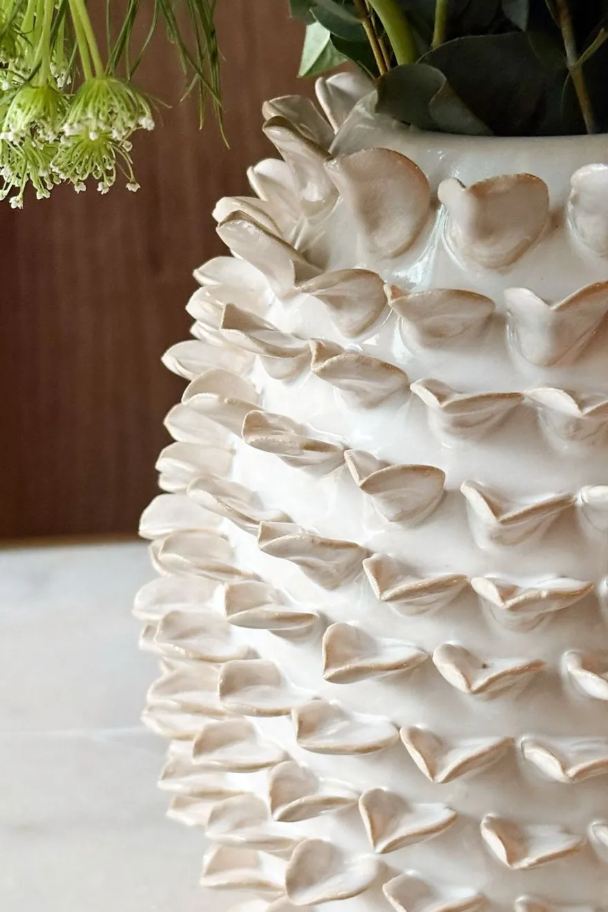 Cristina Oria Jarrones, Floreros Y Maceteros^Jarrón Blanco Con Diseño De Hojas En Relieve