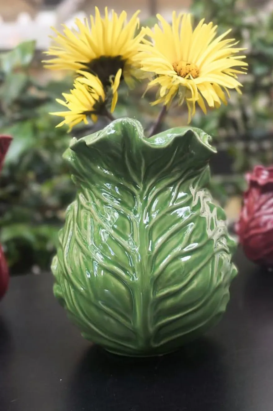 Jarrón de loza fina esmaltada con diseño de alcachofa en tonalidades verdes,100% artesanal, ideal para complementar y dar un toque fresco, original y diferente a cualquier rincón de tu casa, ya sea interior o exterior. Puedes llenarlo con flores o simplemente usarlo para decorar sin nada en su interior.