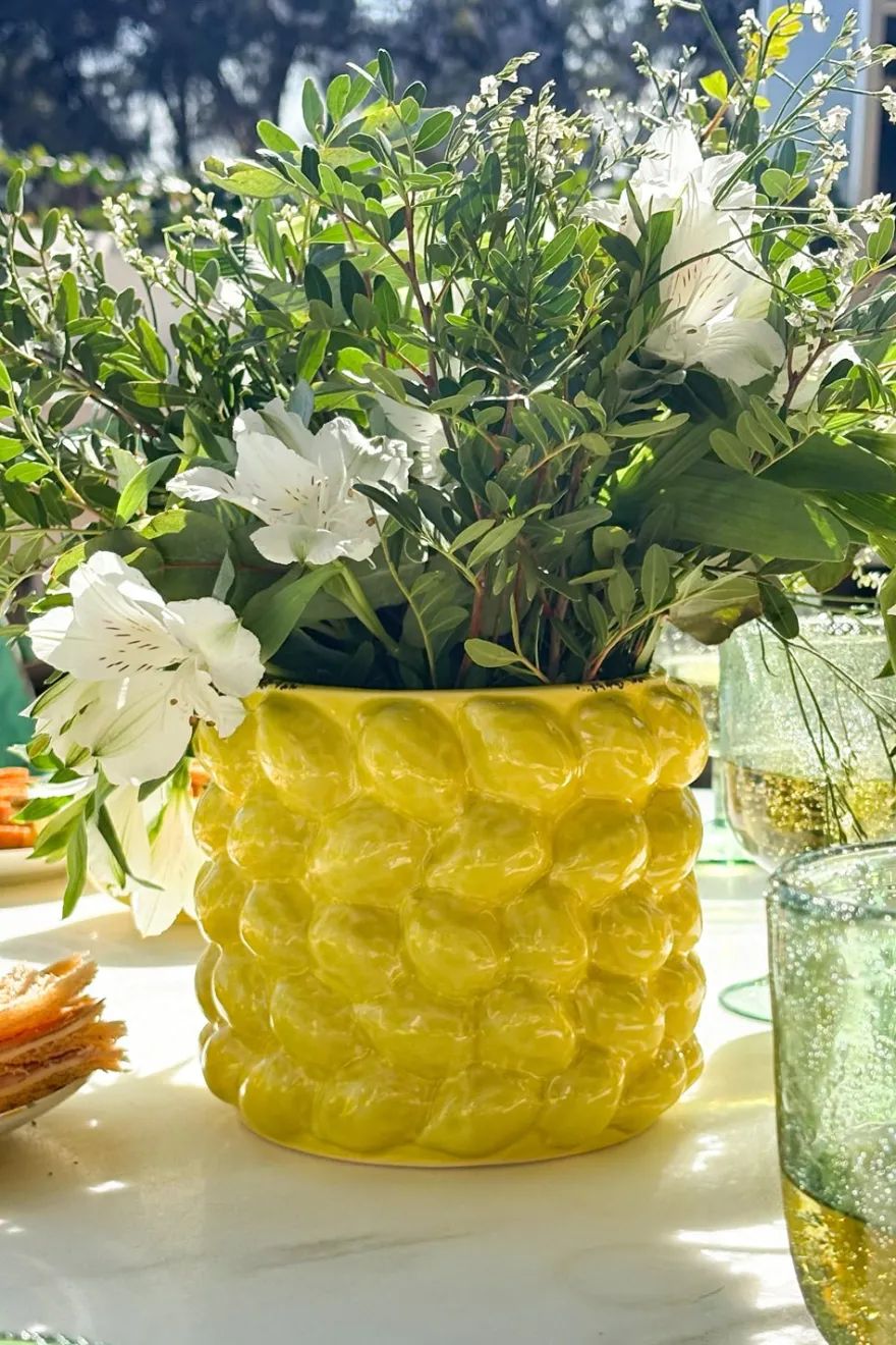 Jarrón con diseño de limones amarillos, que añade frescura y un toque de color a cualquier ambiente. Perfecto para darle un estilo único y veraniego a tu decoración, ya sea con flores o como pieza decorativa.