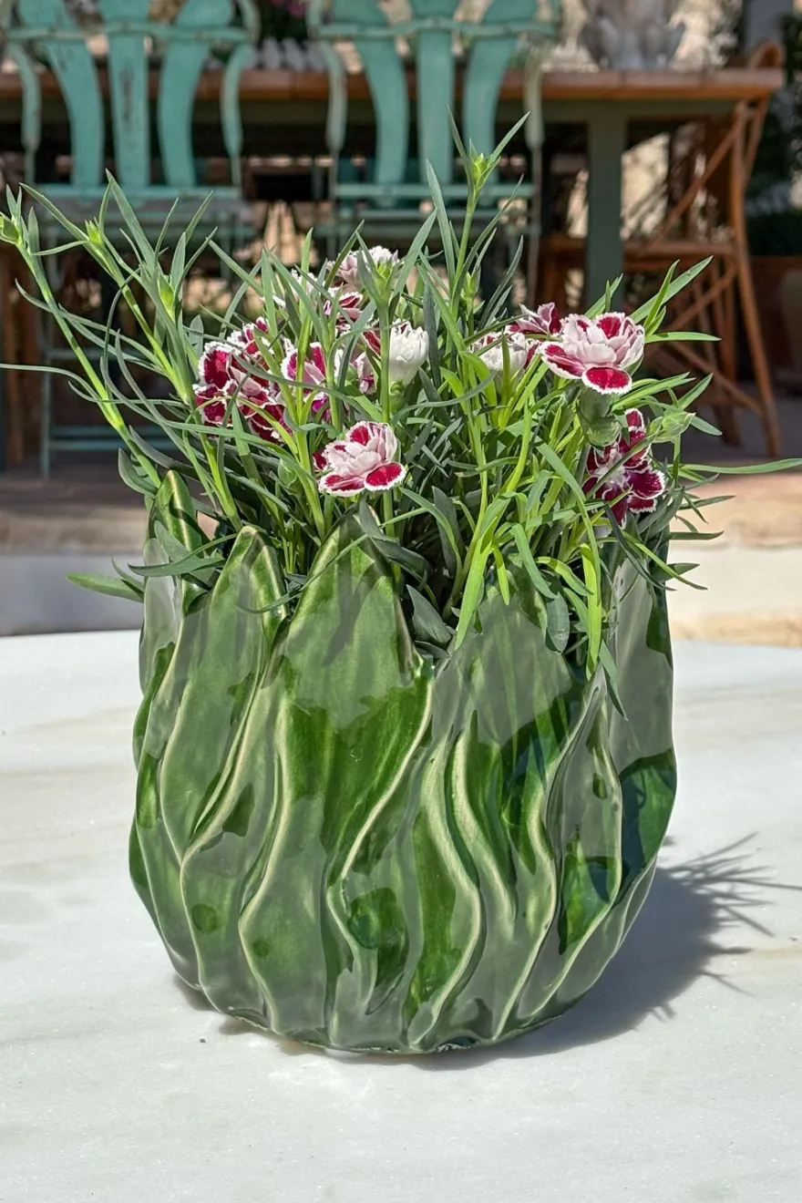 Jarrón grande de loza fina esmaltado con diseño de hojas verdes,100% artesanal, ideal para complementar y dar un toque fresco, original y diferente a cualquier rincón de casa.