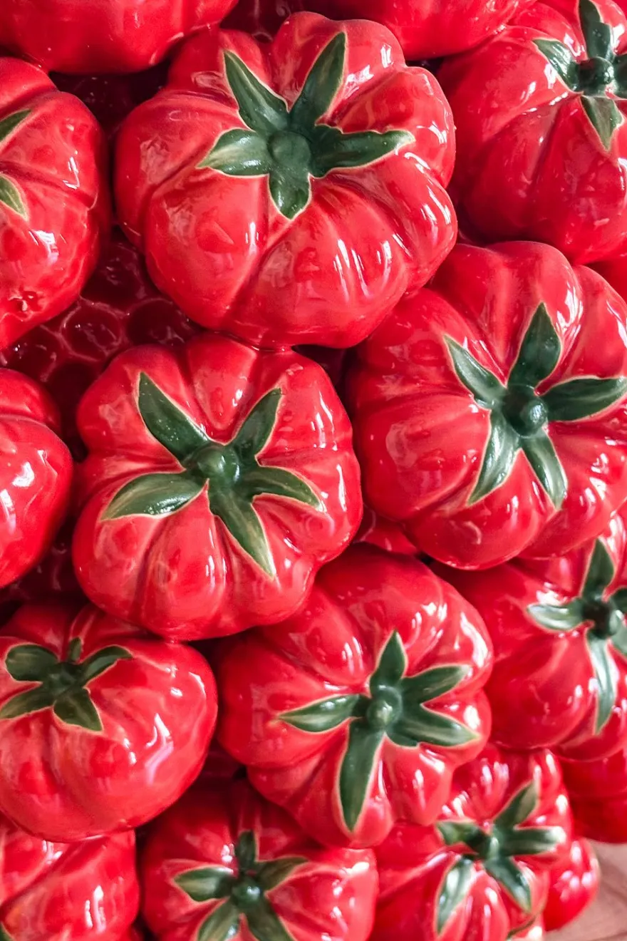 Macetero con diseño de tomates rojos 100% artesanal, ideal para complementar y dar un toque fresco, original y diferente a cualquier rincón de casa, ya sea interior o exterior. Puedes llenarlo con flores o simplemente usarlo para decorar sin nada en su interior.