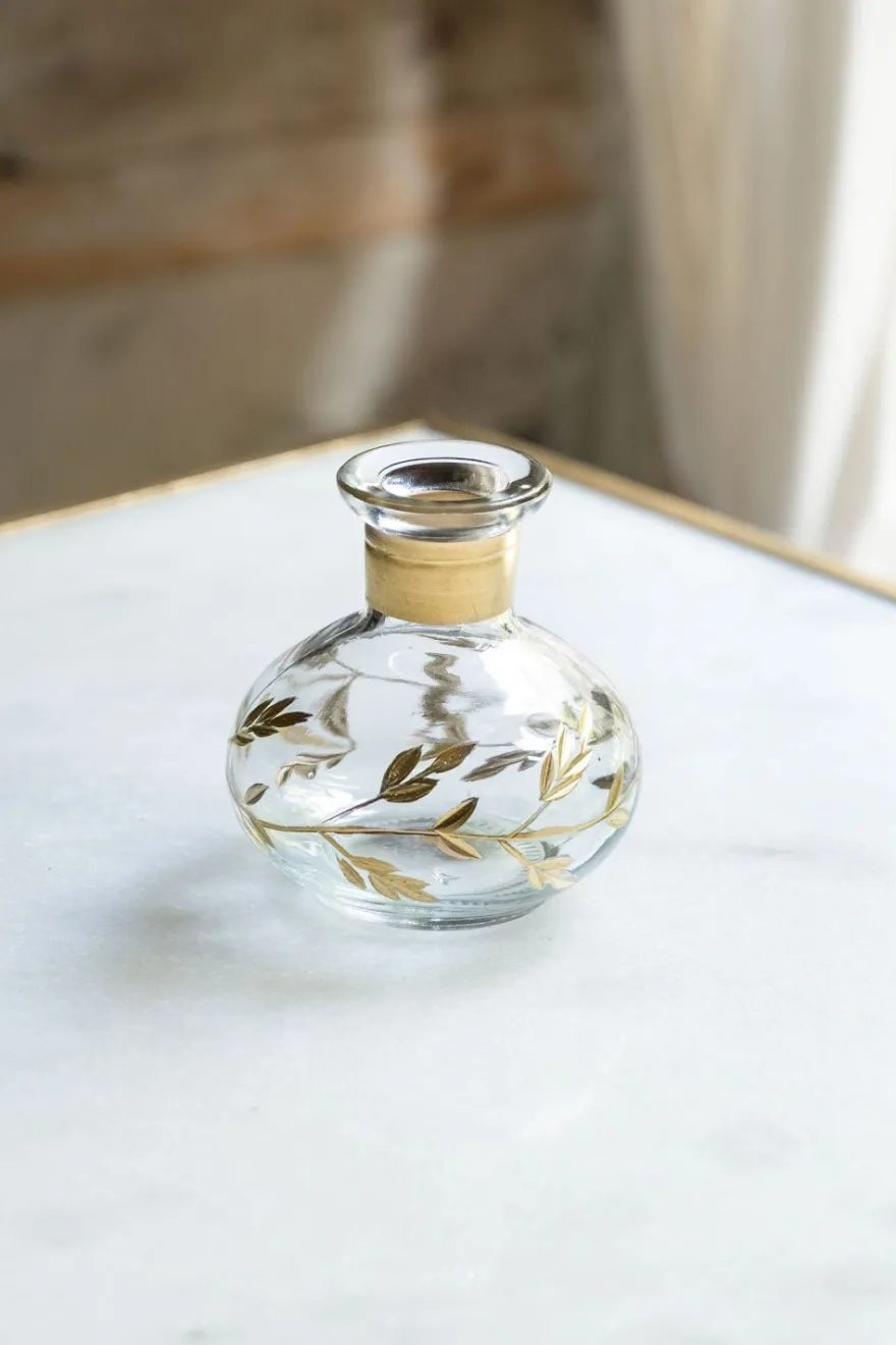 Delicado y elegante, este mini florero de cristal es ideal para decorar pequeños rincones con estilo. Está decorado con flores doradas pintadas a mano, lo que le da un toque artístico y único. Perfecto para una flor pequeña, ramas secas o simplemente como adorno decorativo.