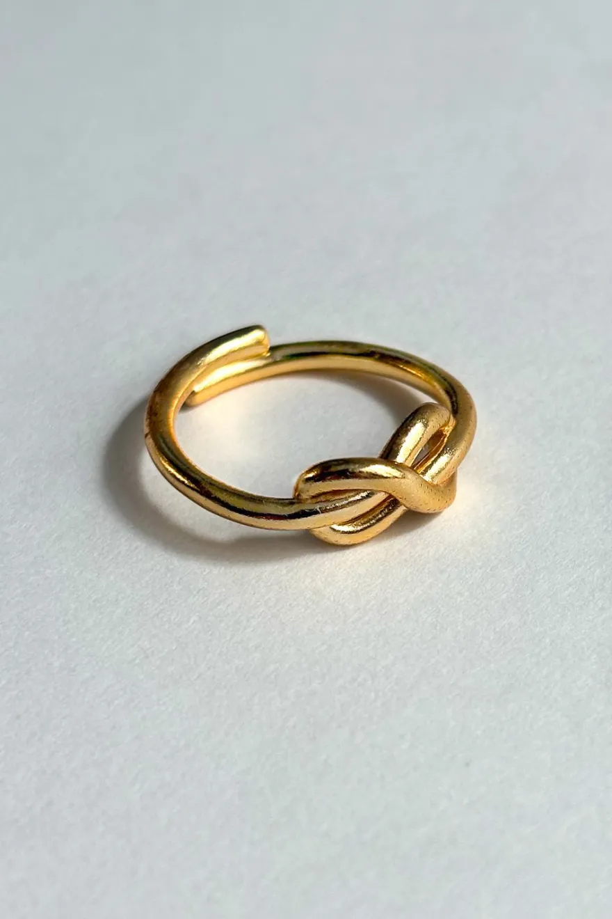 Anillo ajustable de latón bañado en oro para lograr un acabado brillante y duradero con diseño de infinito, ideal tanto para el día a día, como para cualquier ocasión especial.