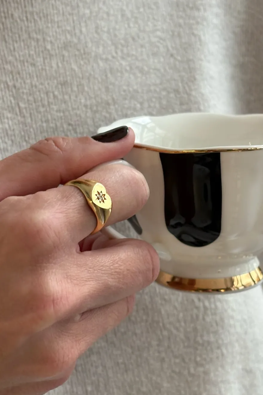 Combinación de collar y anillo de latón bañados en oro para lograr un acabado brillante y duradero con diseño de corazón y detalle de brillante, ideal tanto para su uso diario como para cualquier ocasión especial.