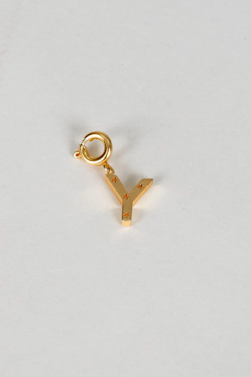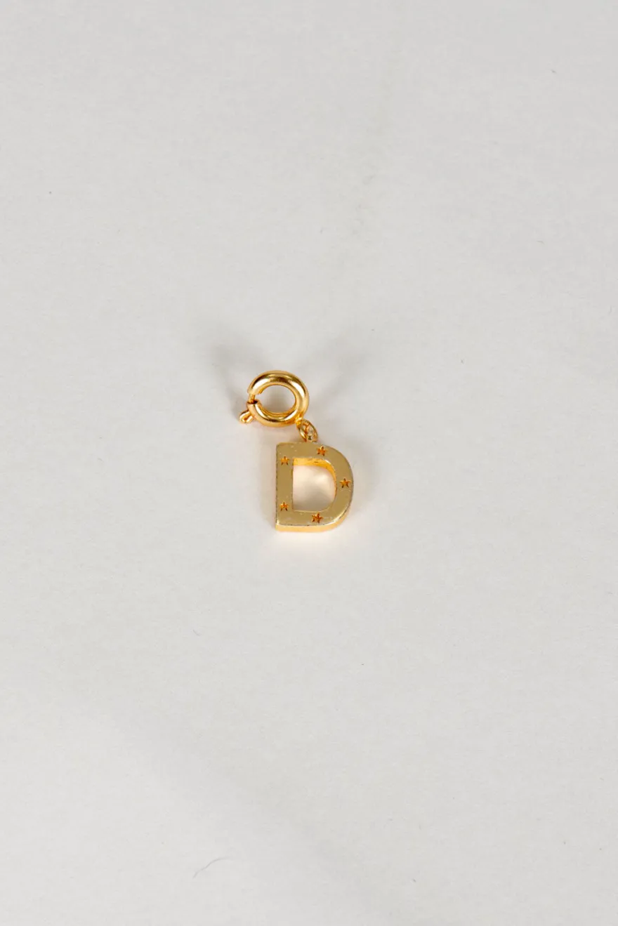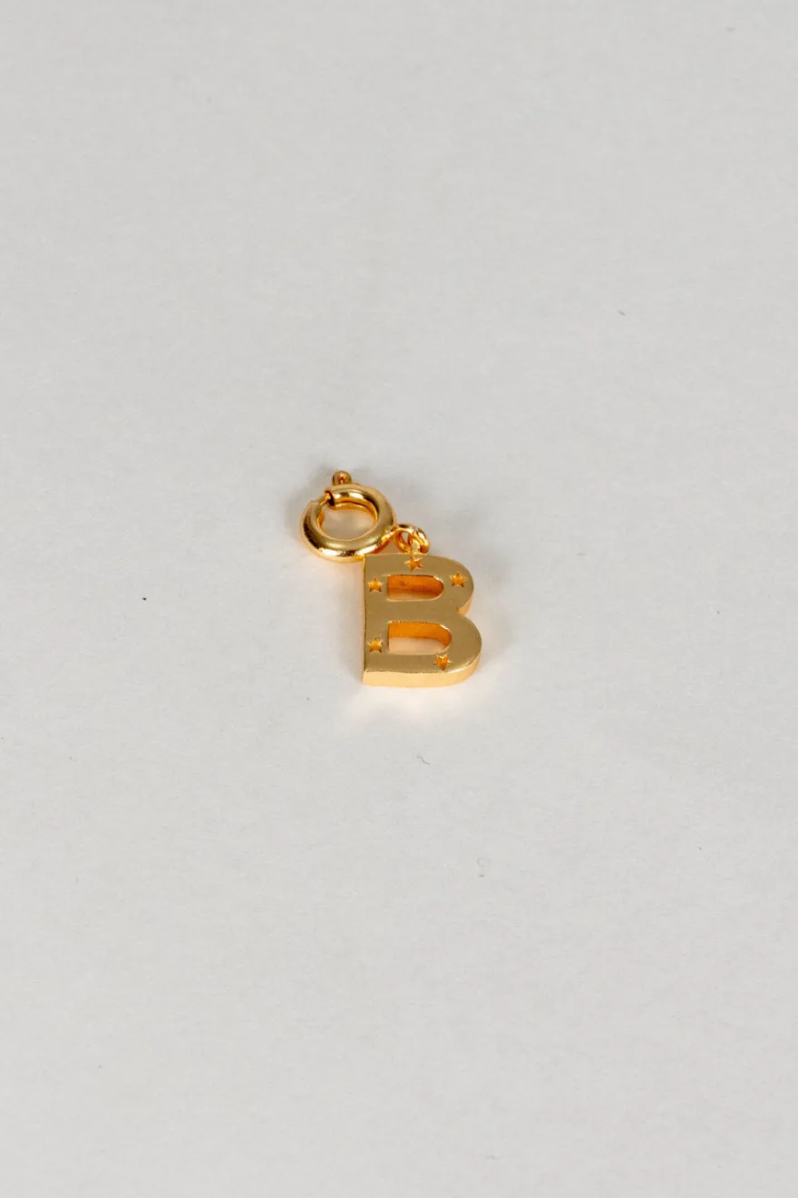 Iniciales de latón bañadas en oro para lograr un acabado brillante y duradero con delicados detalles de estrellas que aportan un brillo sutil y encantador. Cada letra incluye un enganche que permite colgarla fácilmente en distintas cadenas o pulseras, adaptándose a diferentes estilos.