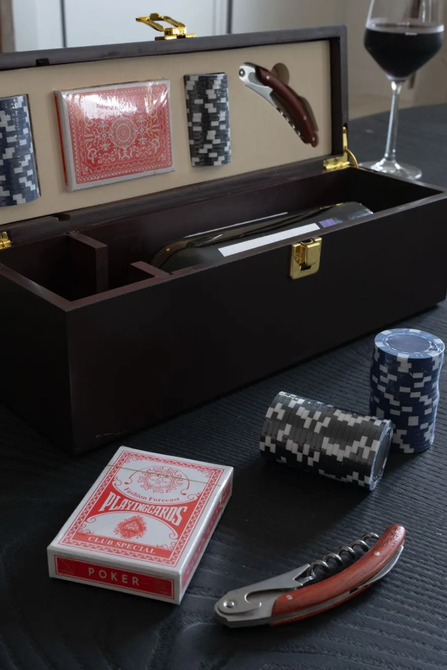 Original set para regalar a los amantes del vino y de los juegos de mesa.