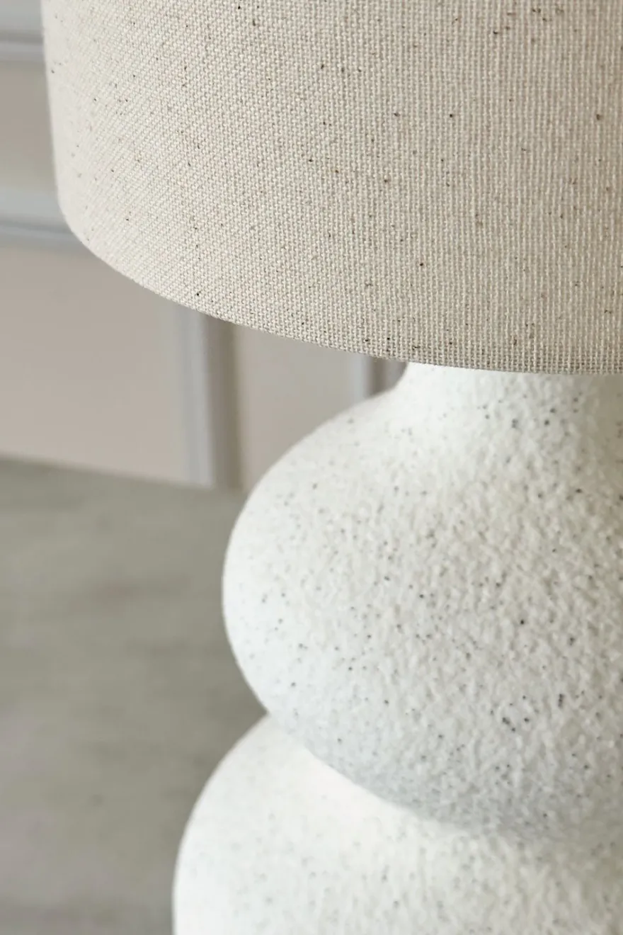 Lámpara de mesa decorativa con un elegante cuerpo de cerámica en tono crema y pantalla de lino, diseñada para aportar calidez y equilibrio a cualquier rincón. Su silueta suave y orgánica la convierte en una pieza decorativa ideal para salones, dormitorios o zonas de lectura.
