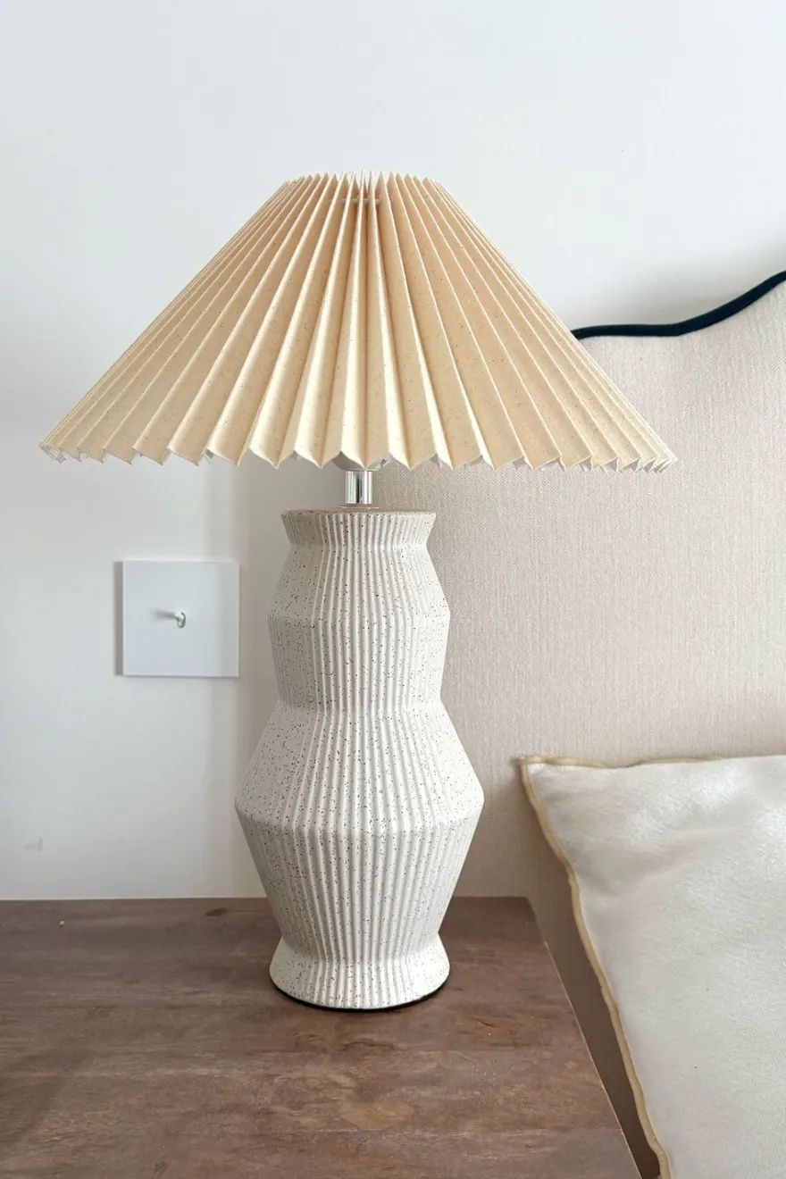 Esta lámpara de sobremesa de cerámica destaca por sus diseños inspirados en figuras de origami y formas prismáticas, creando una pieza sofisticada y contemporánea. Su acabado delicado y sus líneas geométricas aportan textura, estilo y una presencia única en cualquier espacio. Ideal para escritorios, mesas auxiliares o rincones de lectura, esta lámpara no solo ilumina, sino que también decora con elegancia y originalidad.