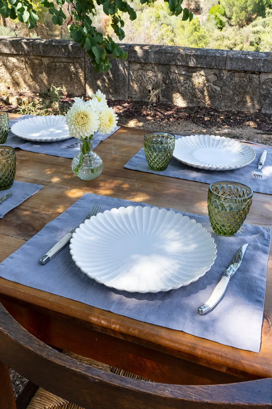 Individual de lino hecho a mano, disponible en una amplia gama de colores, que le dará un aspecto fresco, elegante y lujoso a tu mesa. Se puede usar a diario o para una gran celebración.