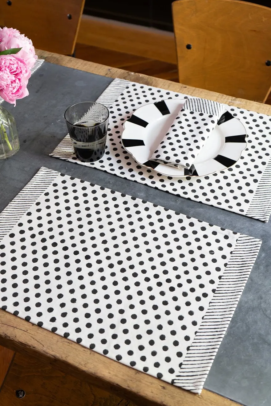 Mantel individual 100% algodón con diseño Ganesh, con los colores blanco y negro CO, pintado a mano en la India.
