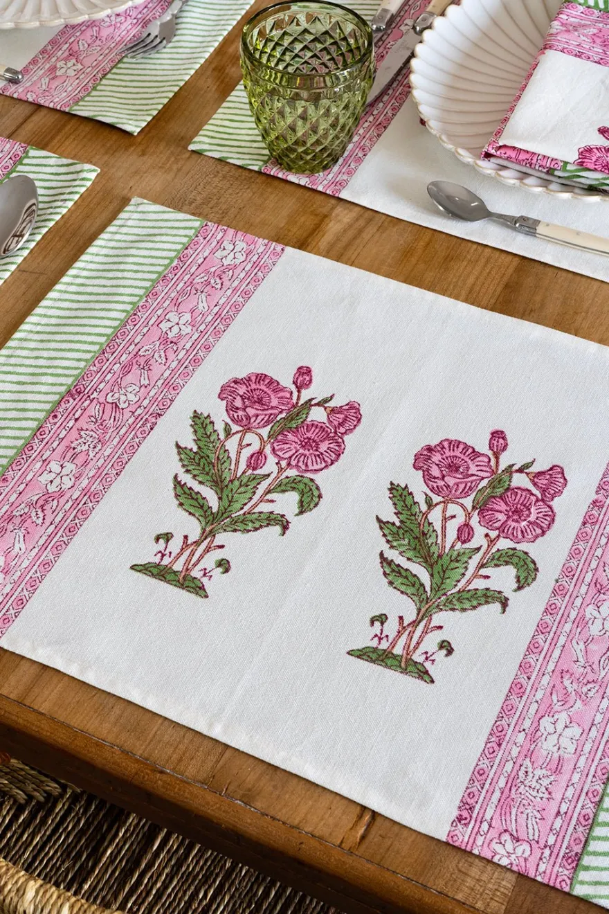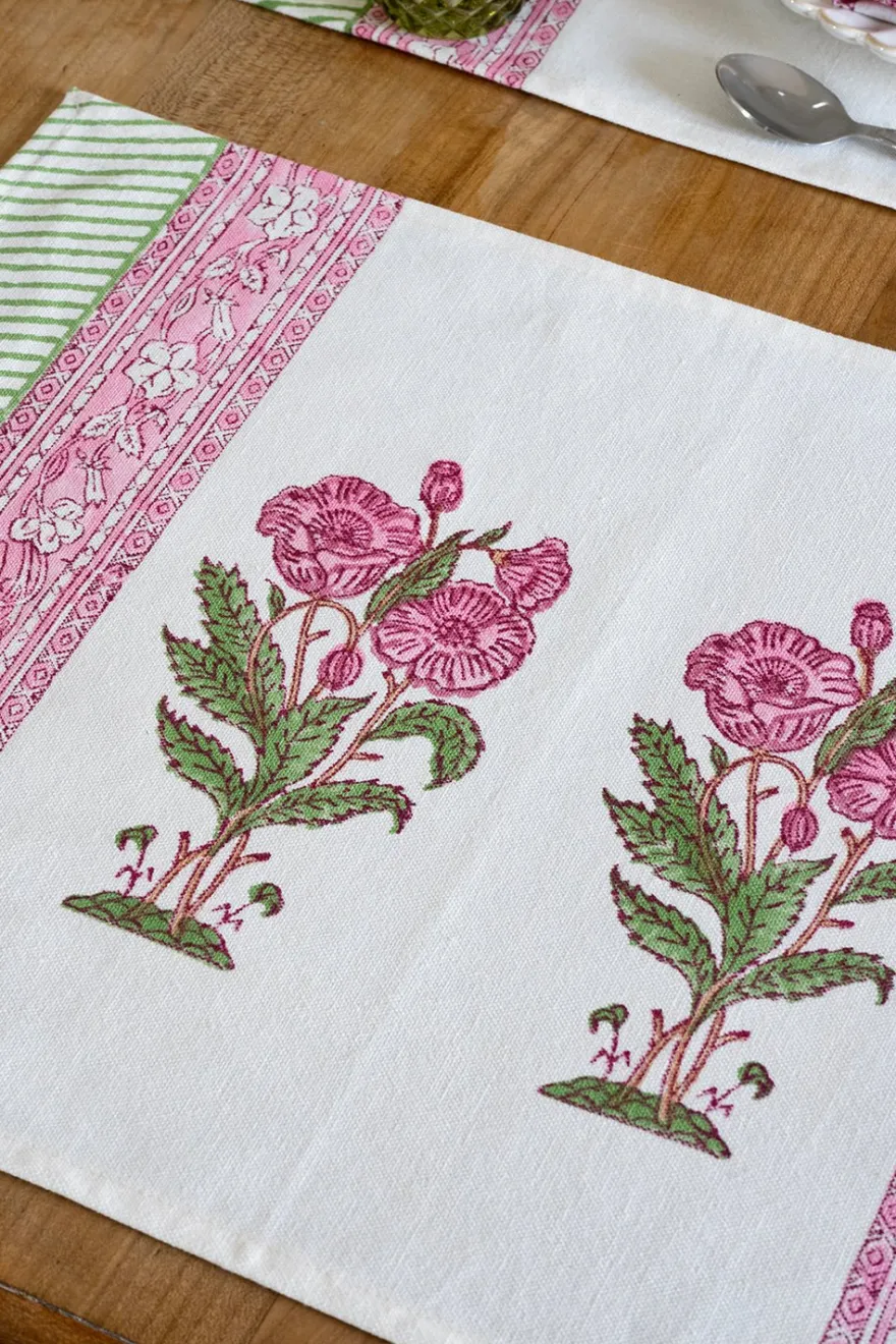 Mantel individual 100% algodón con diseño Gita, cuyo significado es “Viaje”, pintado a mano en la India.