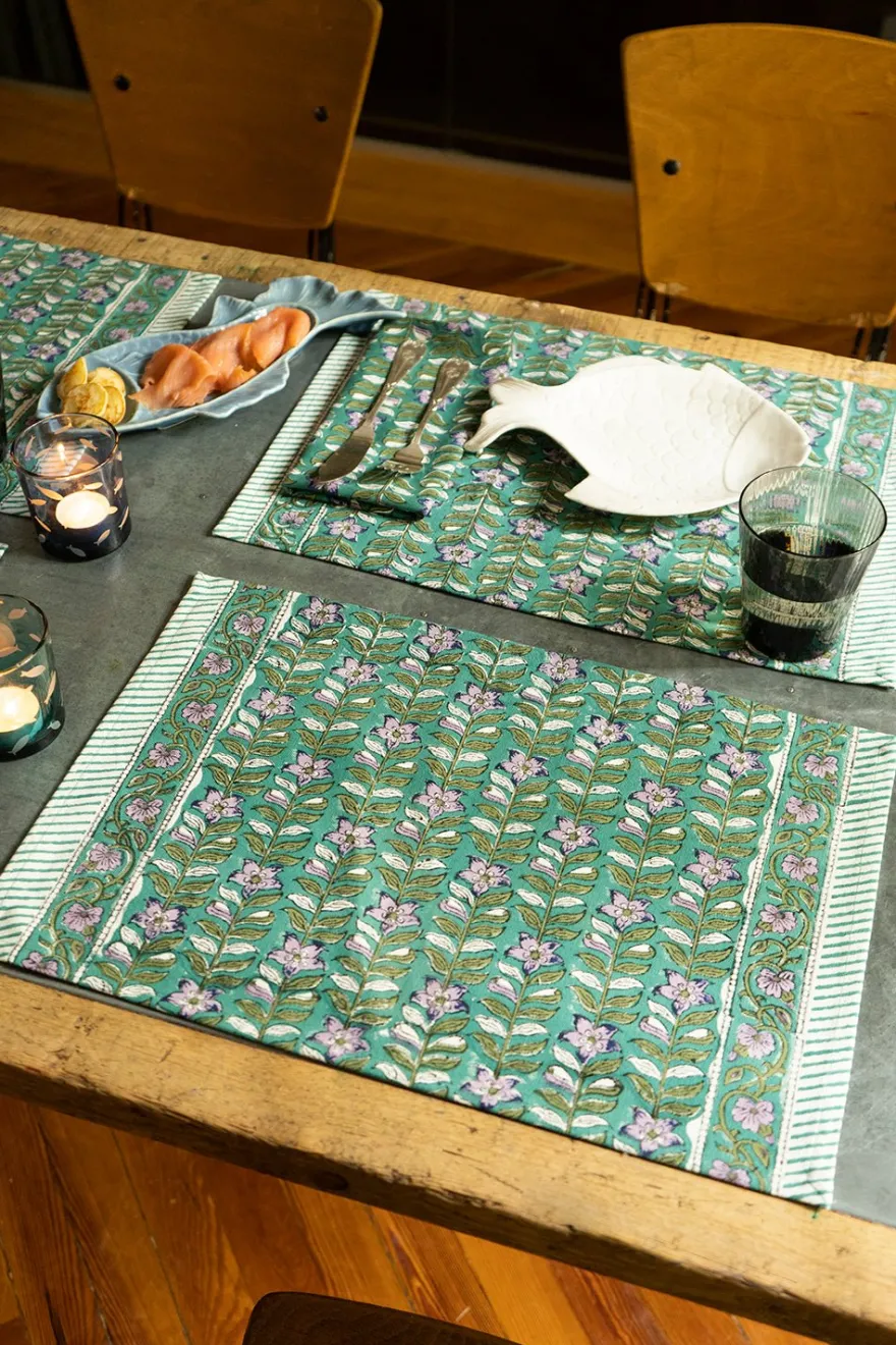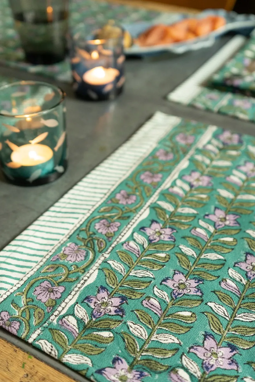 Mantel individual 100% algodón con diseño Uma, cuyo significado es “Tranquilidad”, pintado a mano en la India.
