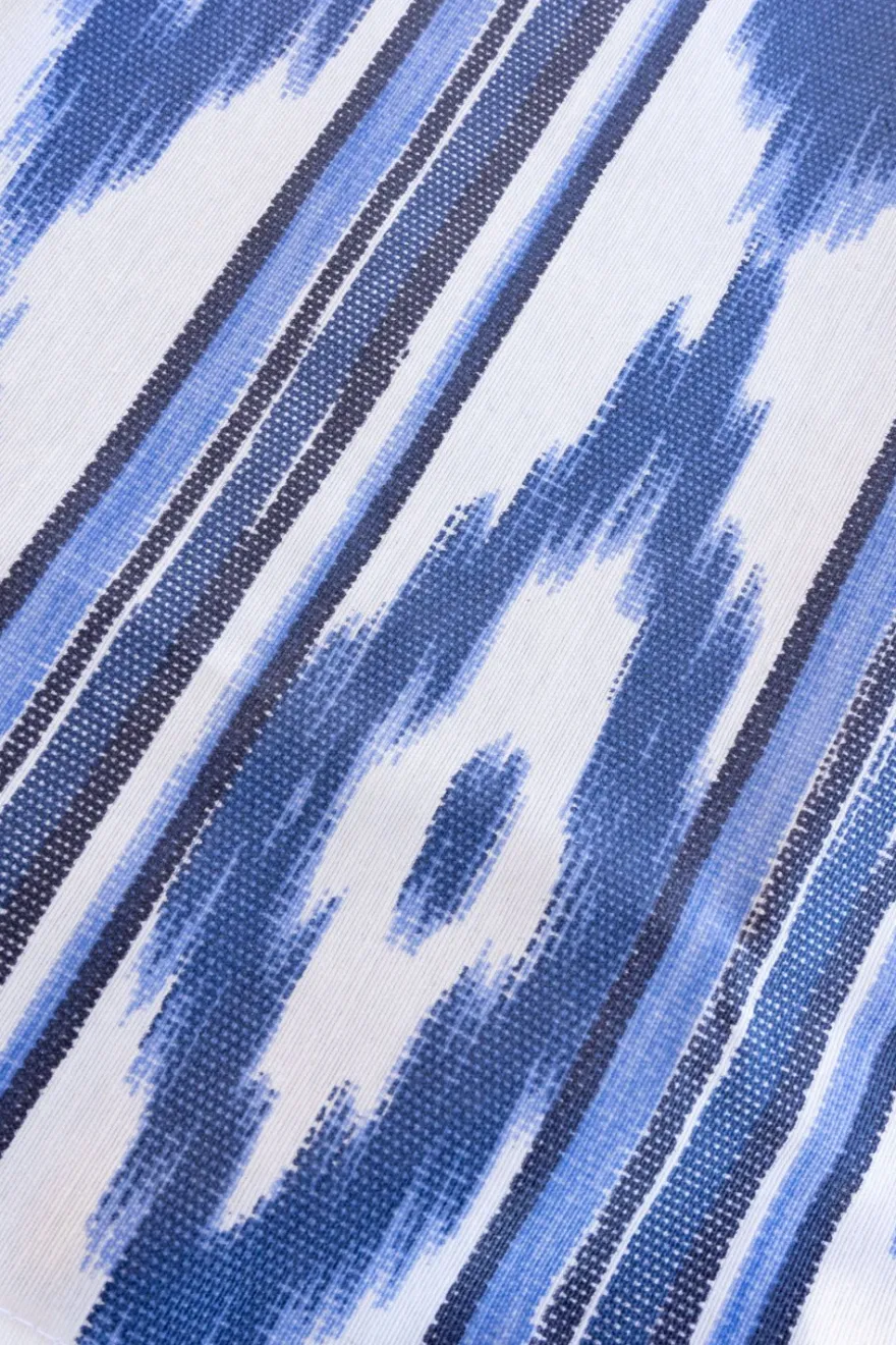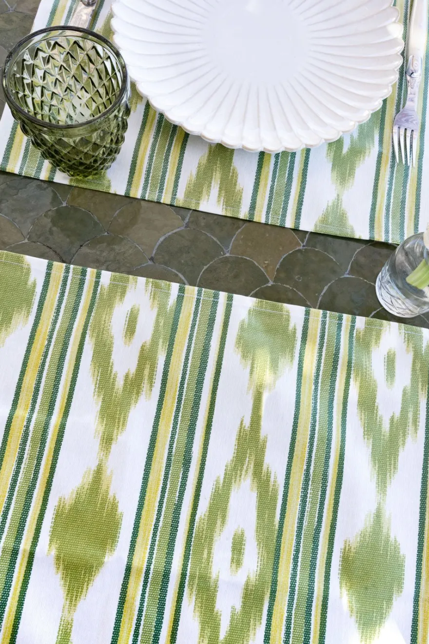 Manteles individuales con diseño azteca y acabado con dobladillo, de 50% algodón que ha sido tratado específicamente para repeler las manchas.