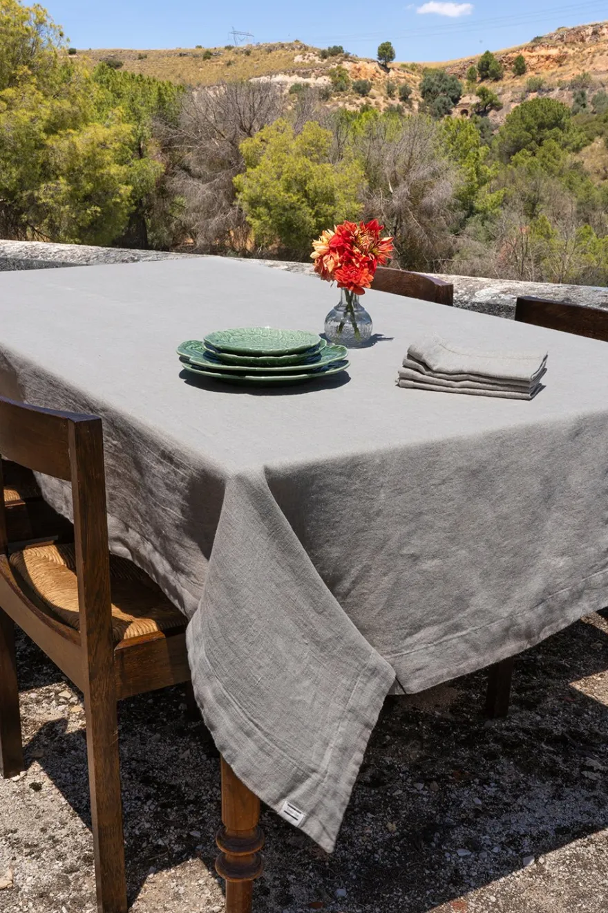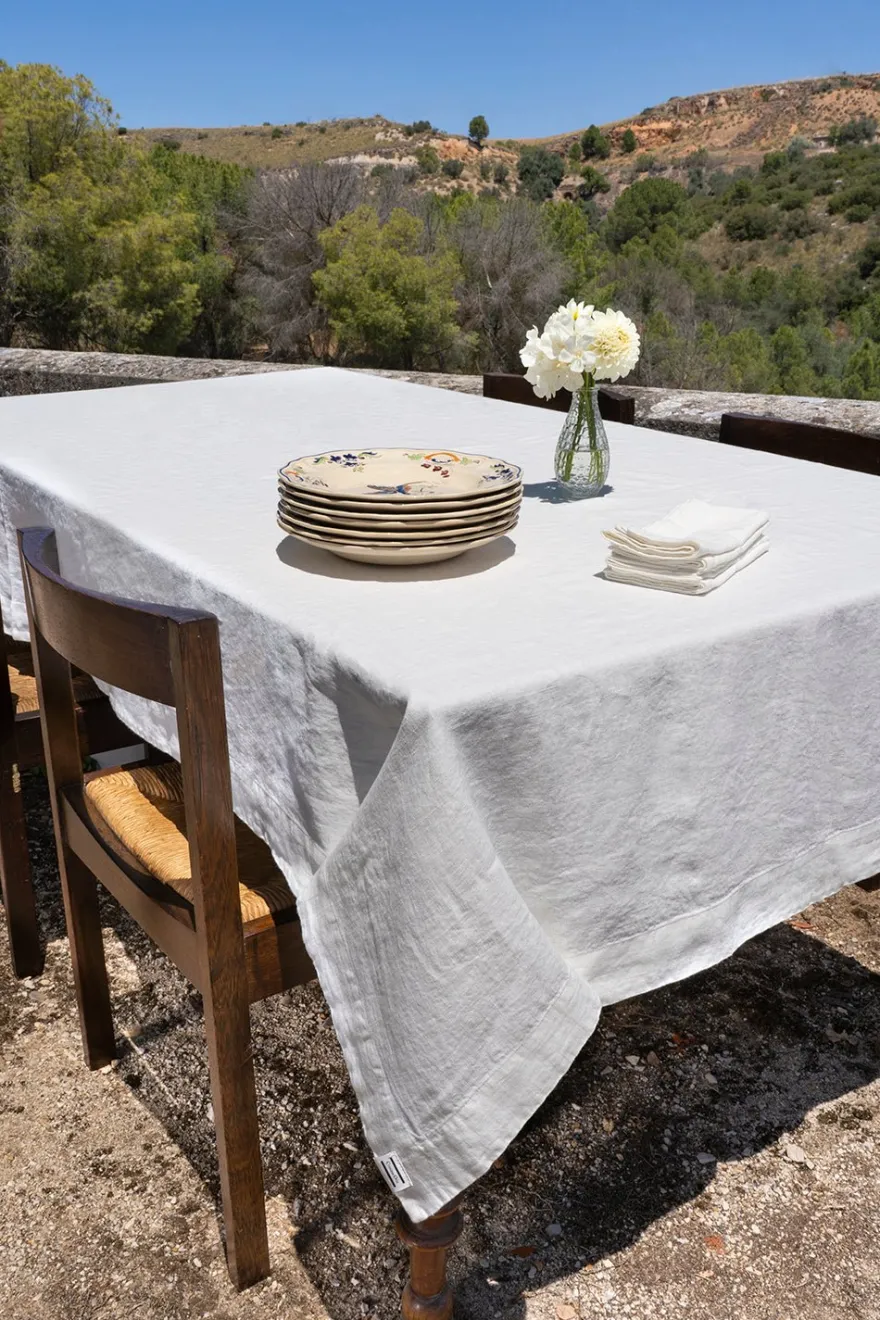 Mantel de lino hecho a mano, disponible en una amplia gama de colores, que le dará un aspecto fresco, elegante y lujoso a tu mesa. Se puede usar a diario o para una gran celebración.