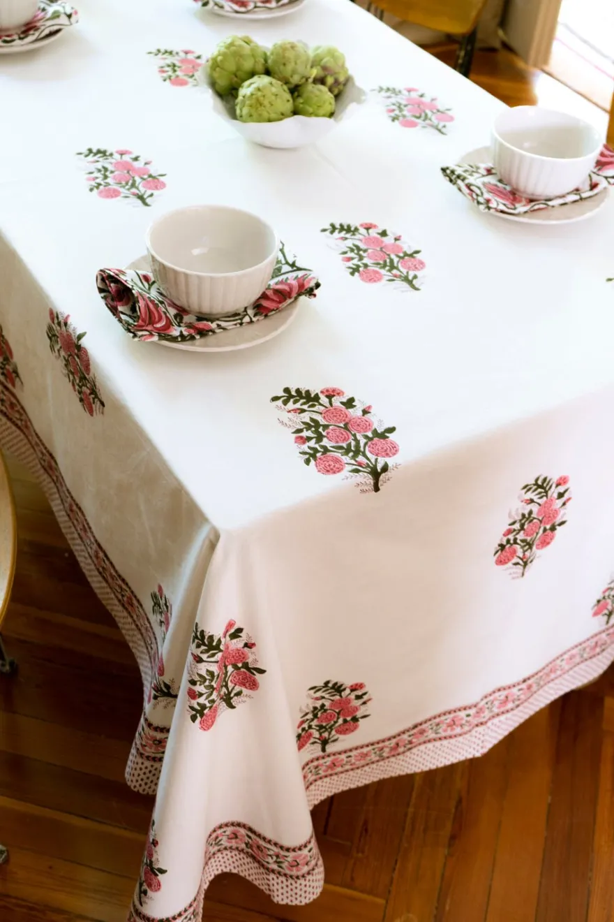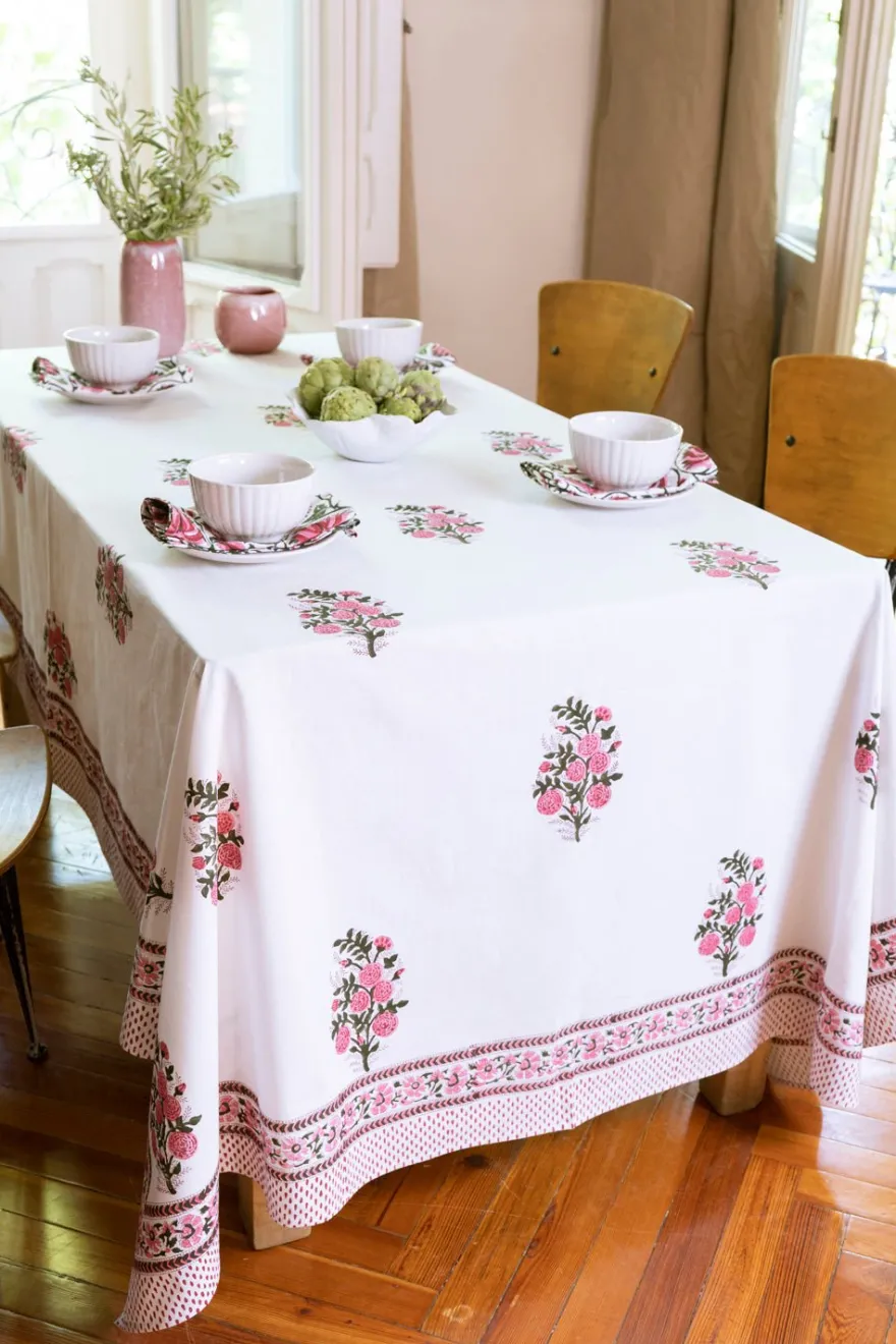 Mantel 100% algodón con diseño Kalpana, cuyo significado es “Fantasía”, pintado a mano en la India.