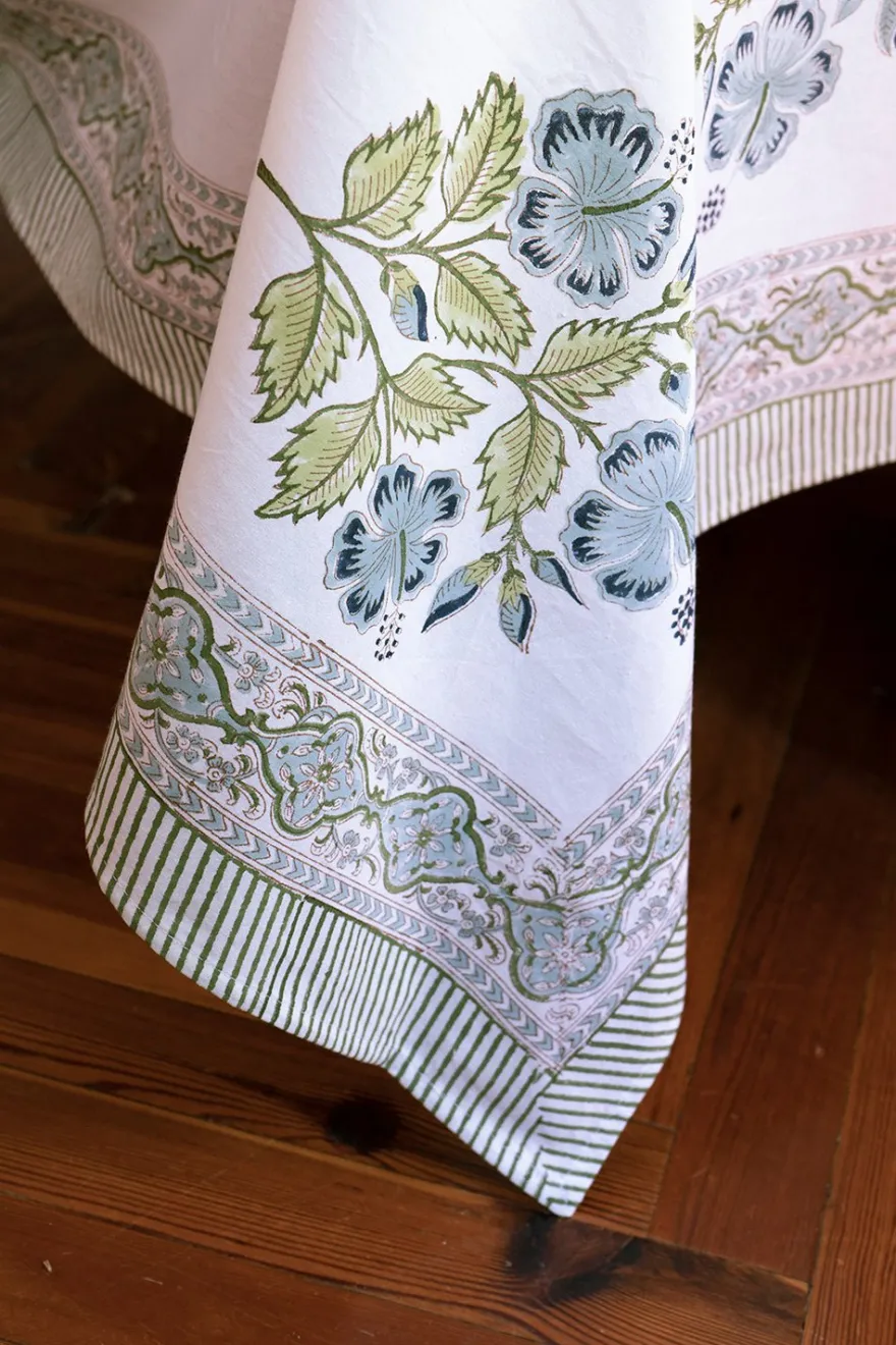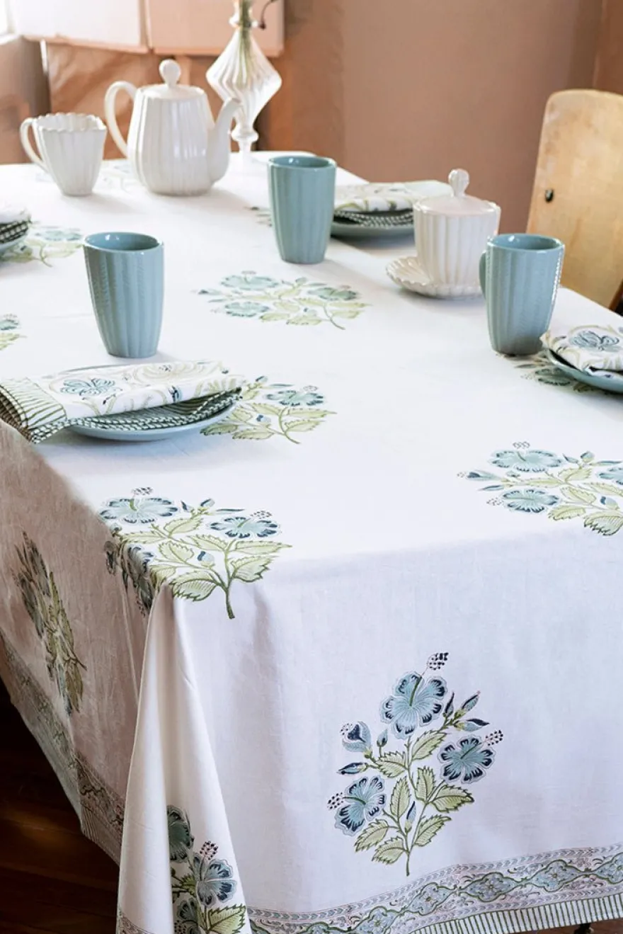 Mantel 100% algodón con diseño Naisha, cuyo significado es “Especial”, pintado a mano en la India.