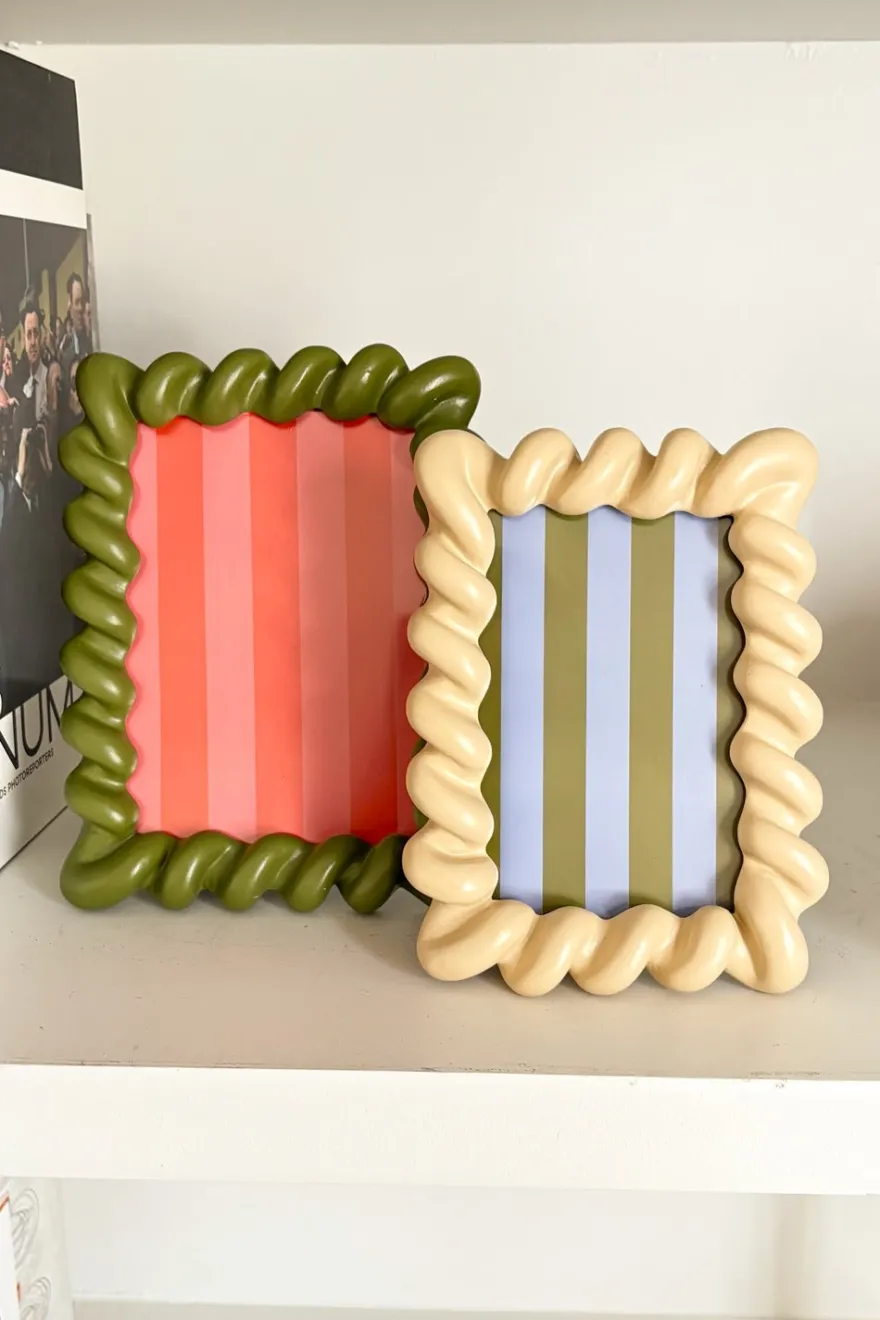 Este original marco de fotos de poliresina destaca por su diseño en espiral beige que evoca una sensación de movimiento y frescura. Ideal para quienes buscan enmarcar sus recuerdos más especiales de una forma distinta y llena de estilo.