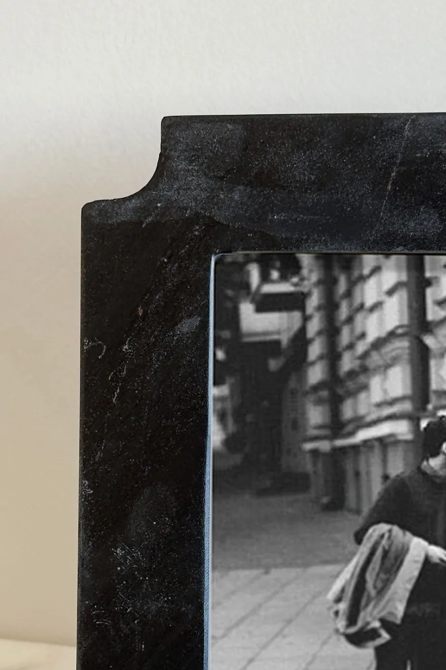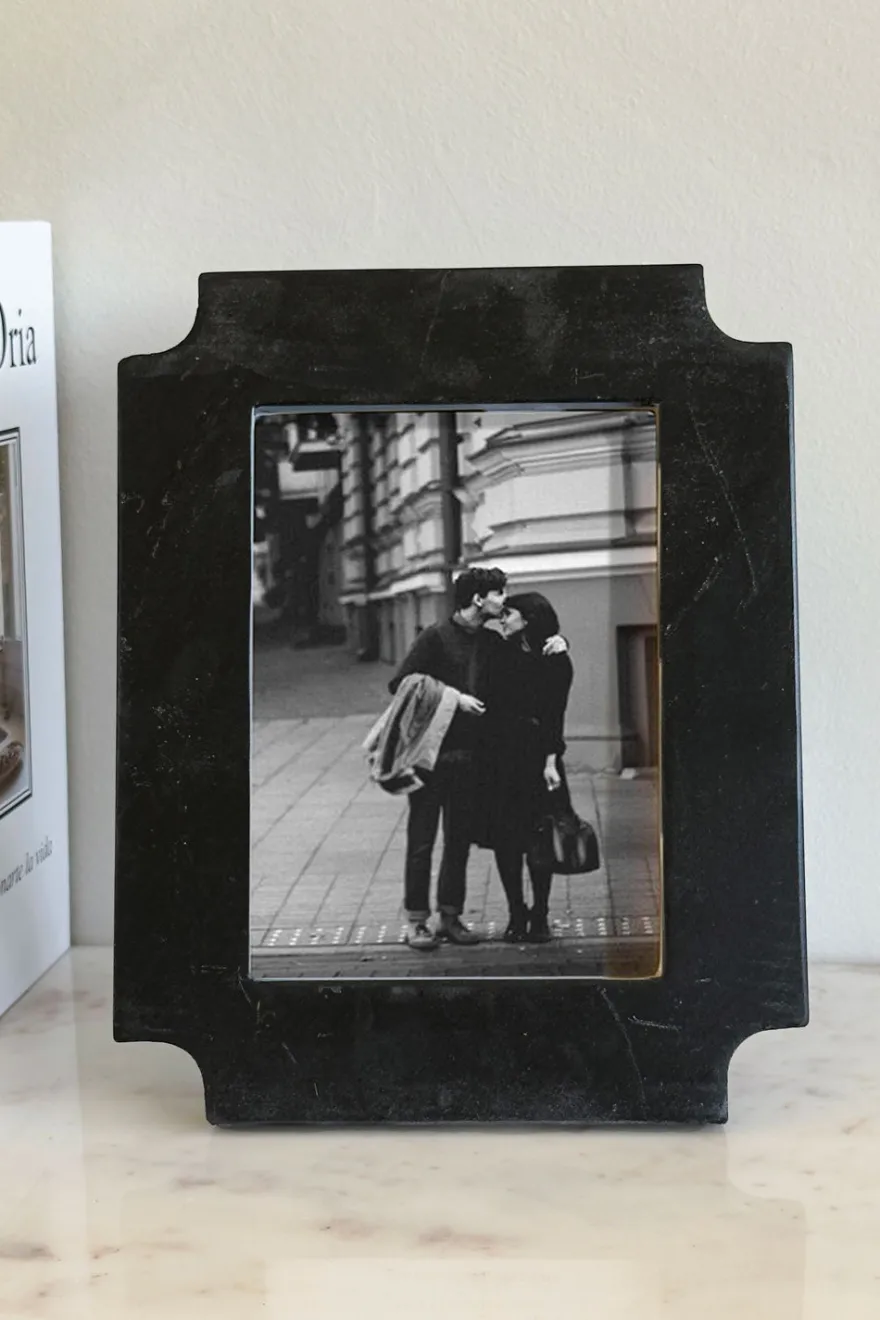 Marco de fotos elaborado en mármol negro, una pieza sofisticada que destaca por sus vetas naturales y su diseño atemporal. Su acabado sólido y elegante aporta un toque distinguido a cualquier espacio, realzando tus recuerdos con estilo. Ideal para colocar sobre mesas, estanterías o cómodas, convirtiéndose en un elemento decorativo único y lleno de personalidad.
