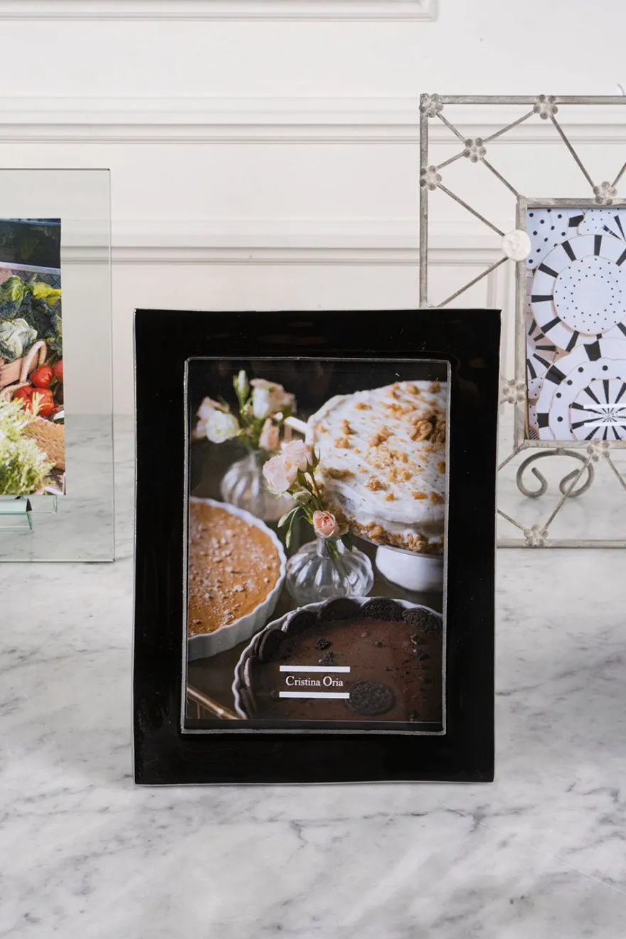 Marco de fotos/ portarretratos con borde de metal esmaltado en color negro, ideal para decorar cualquier rincón de tu casa.