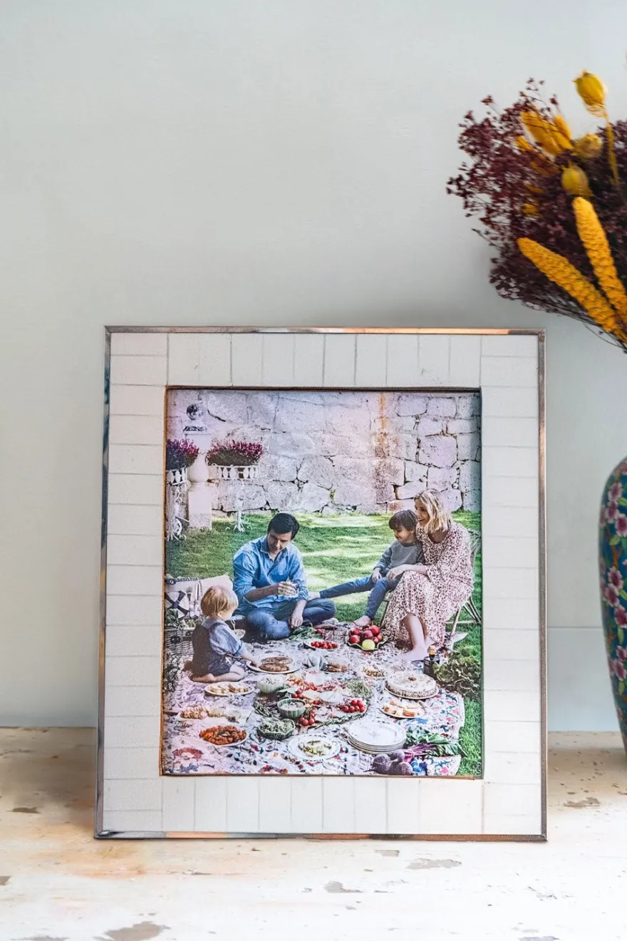 Este marco de fotos de resina blanco con delicado filo metálico tiene un diseño atemporal que se adapta perfectamente a cualquier estilo de decoración, desde lo clásico hasta lo contemporáneo. Ideal para destacar tus recuerdos más especiales, este marco es perfecto para decorar salones, dormitorios u oficinas con estilo y sencillez.