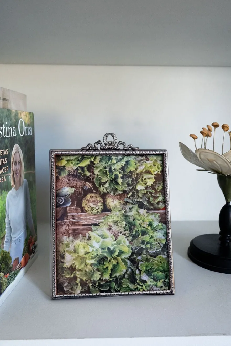 Este marco de fotos, bañado en plata, destaca por sus delicados detalles tallados que evocan la artesanía clásica y el gusto por lo exquisito. Su diseño sofisticado lo convierte en el complemento ideal para cualquier espacio, desde una sala de estar hasta una cómoda en el dormitorio.