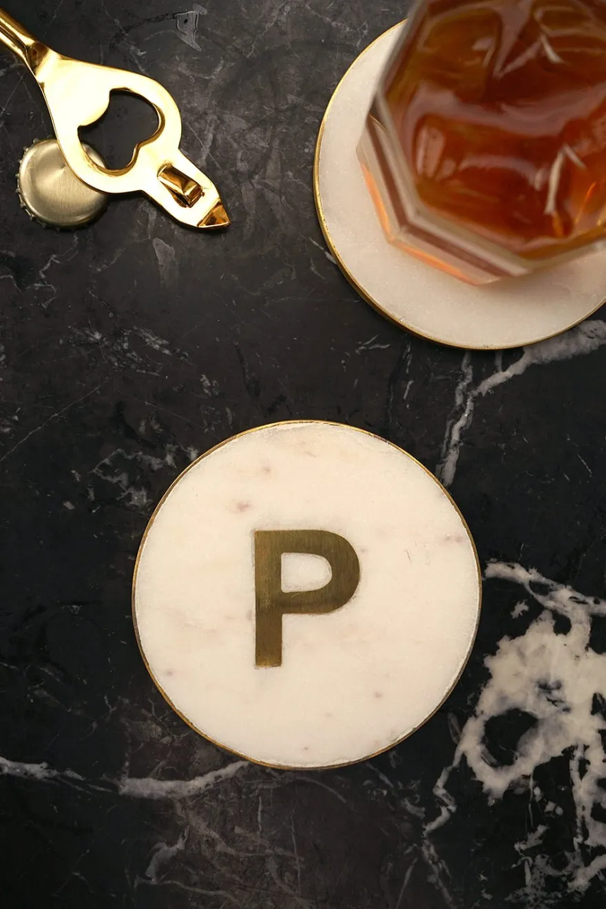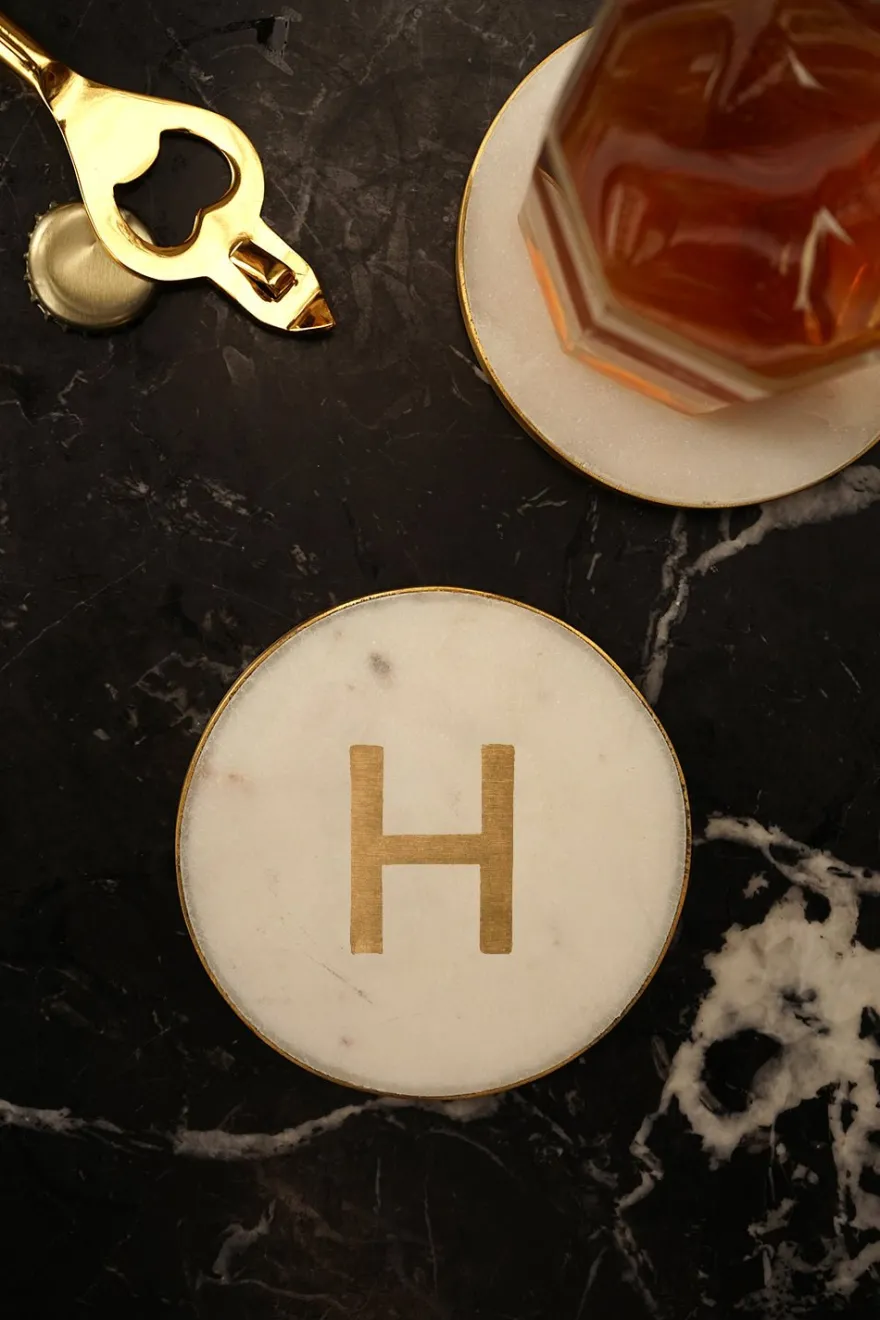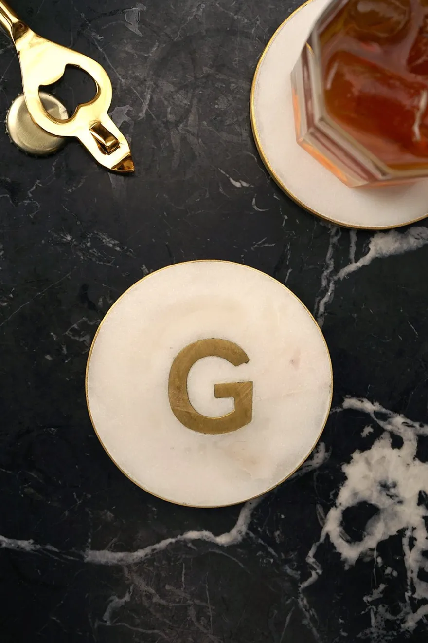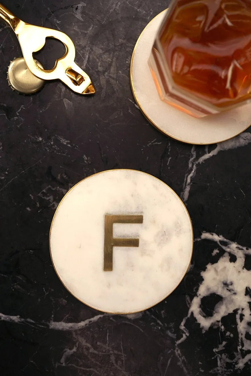En el centro del posavasos, se destaca la inicial personalizada, realizada en latón dorado, que agrega un toque de distinción y lujo.