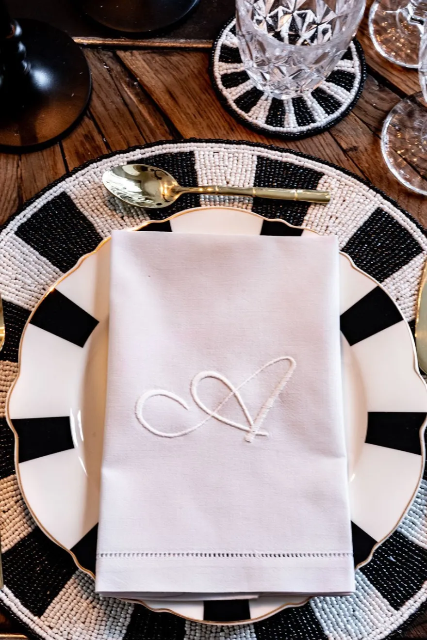 En cada servilleta, se ha bordado cuidadosamente una inicial del abecedario, personalizando cada pieza y haciéndola ideal tanto para uso diario como para ocasiones especiales.