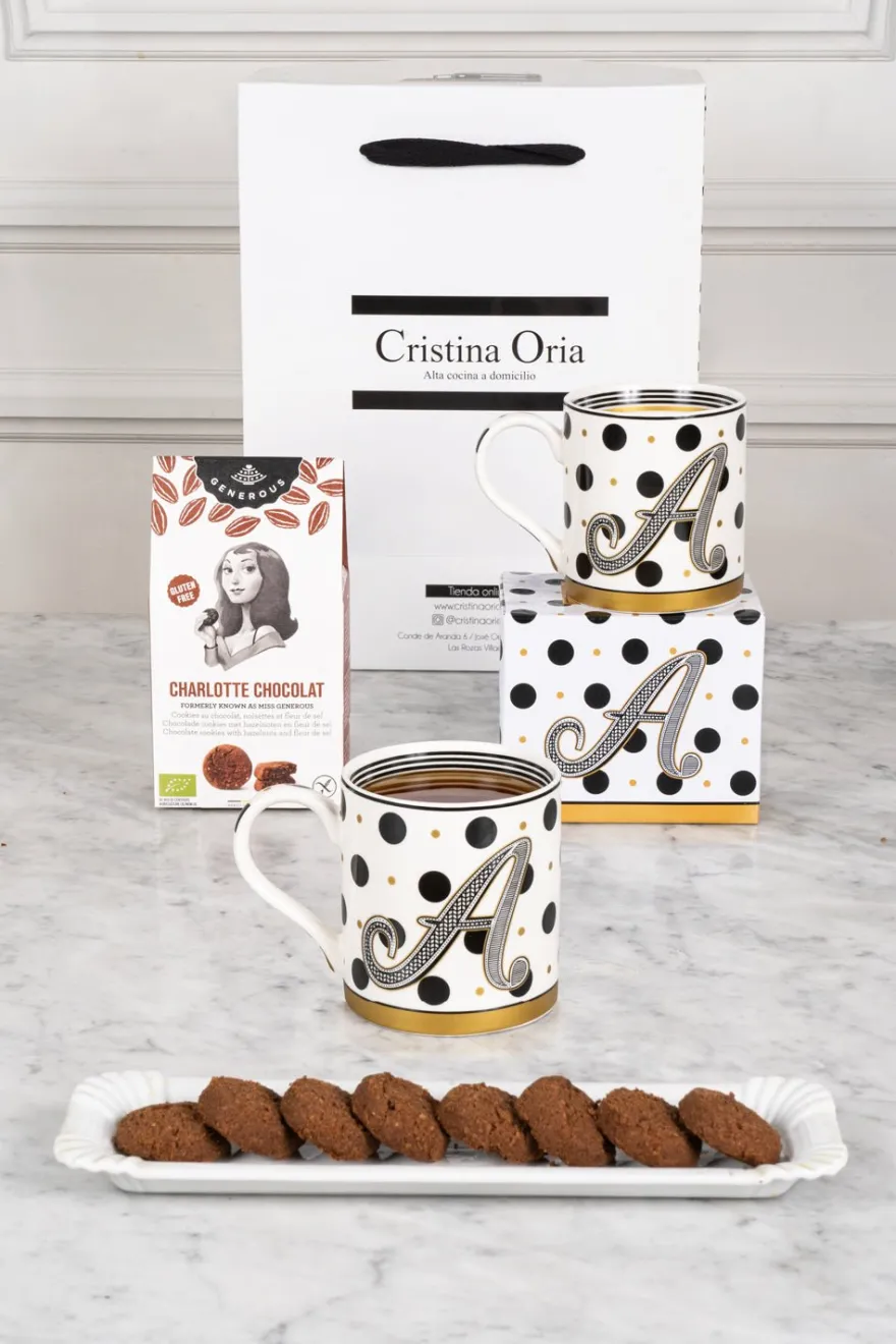 Esta bolsa incluye nuestra icónica taza de iniciales (a escoger) y galletas de chocolate sin gluten. Es un detalle perfecto para regalar en múltiples ocasiones.