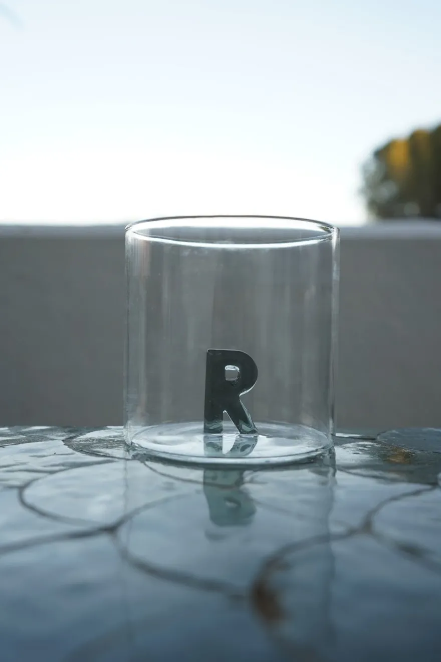 Cada vaso contiene una inicial del abecedario, personalizando cada pieza y haciéndola ideal tanto para uso diario como para ocasiones especiales.