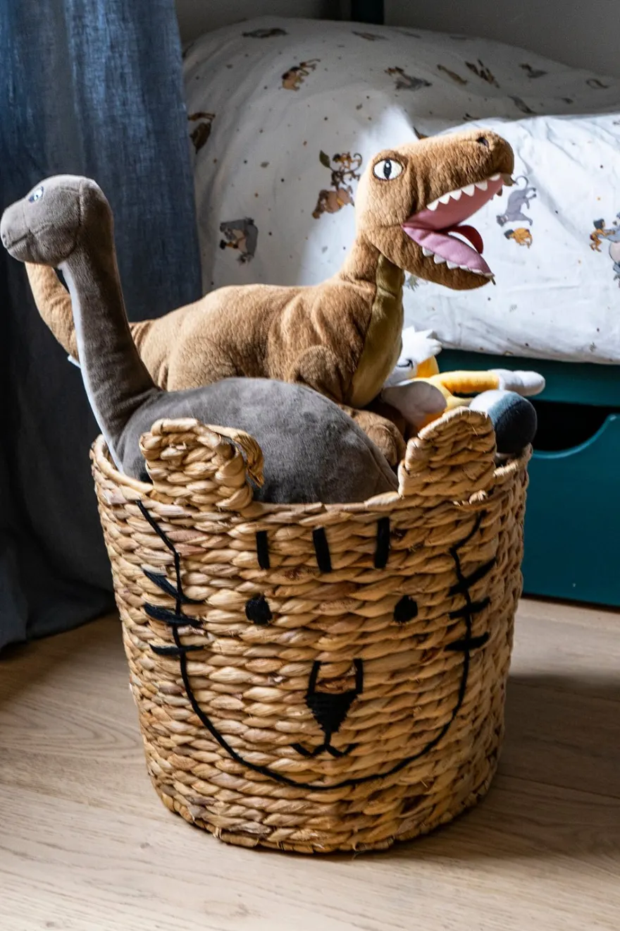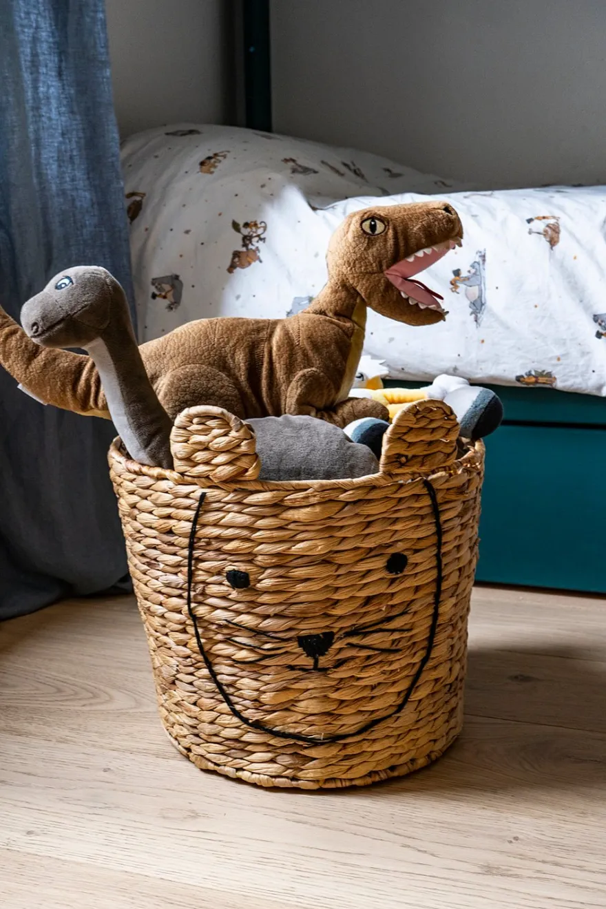 Cesta de junco con diseño de cara de oso, perro, gato o tigre, perfecta para guardar los juguetes, zapatos, pañales…