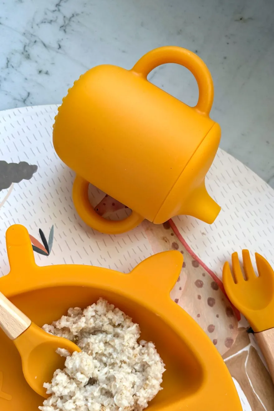 Este vaso de aprendizaje de silicona está diseñado especialmente para acompañar a los más pequeños en la transición del biberón al vaso. Su tamaño y forma facilitan el agarre por manos pequeñas, fomentando la autonomía y la confianza al beber.