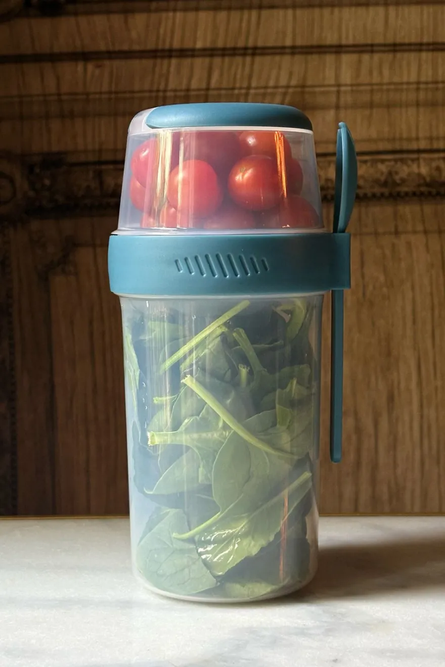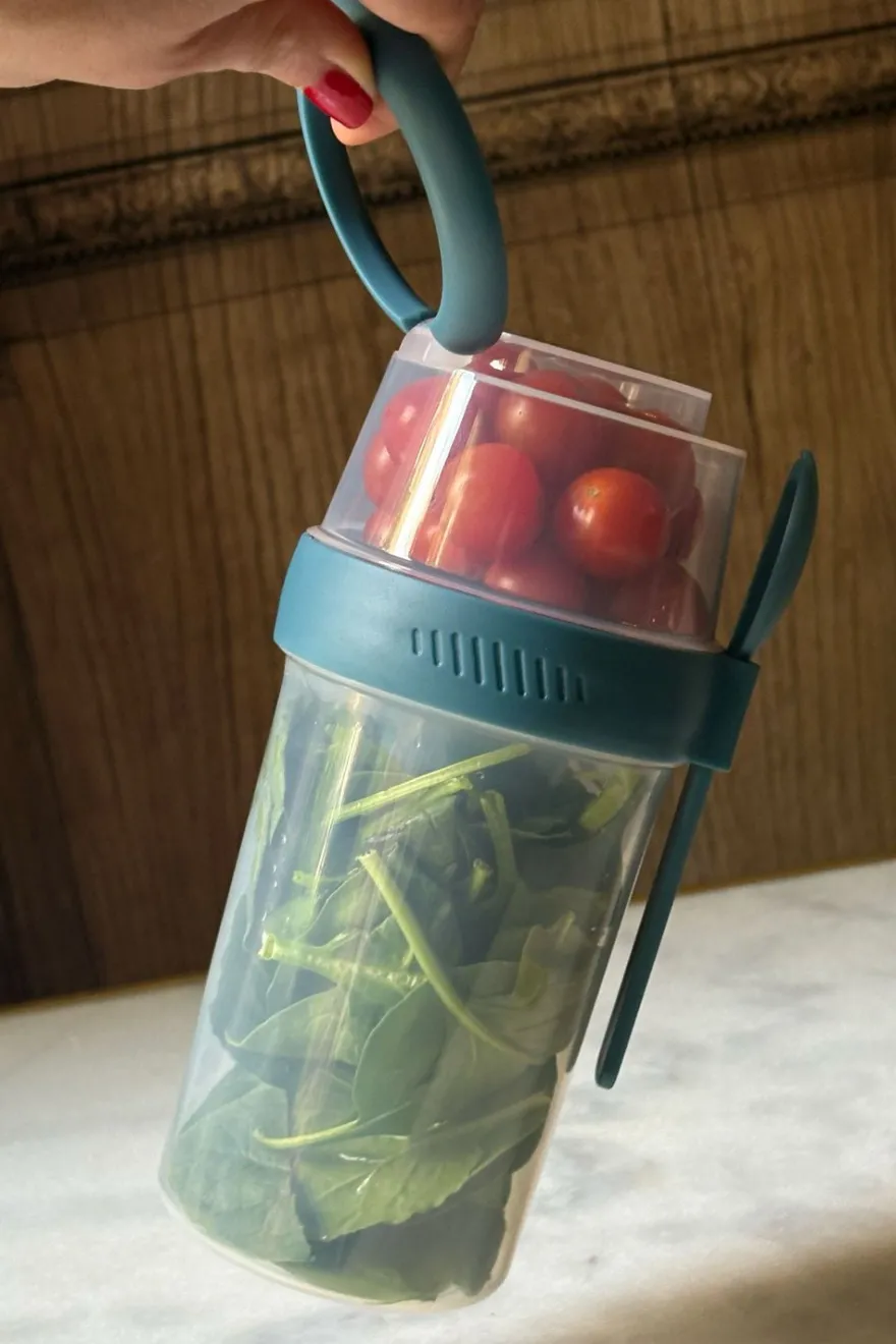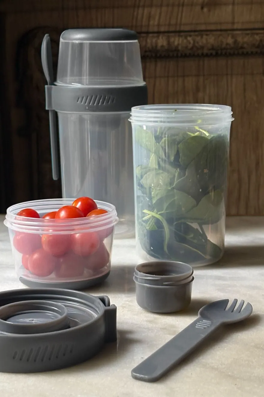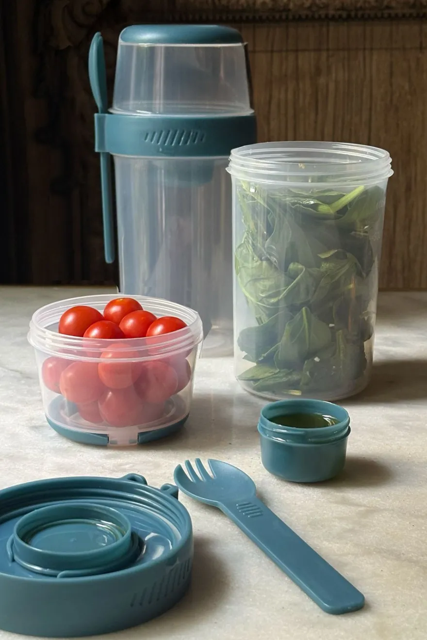 Fiambrera con tres compartimentos ideal para ensaladas.
