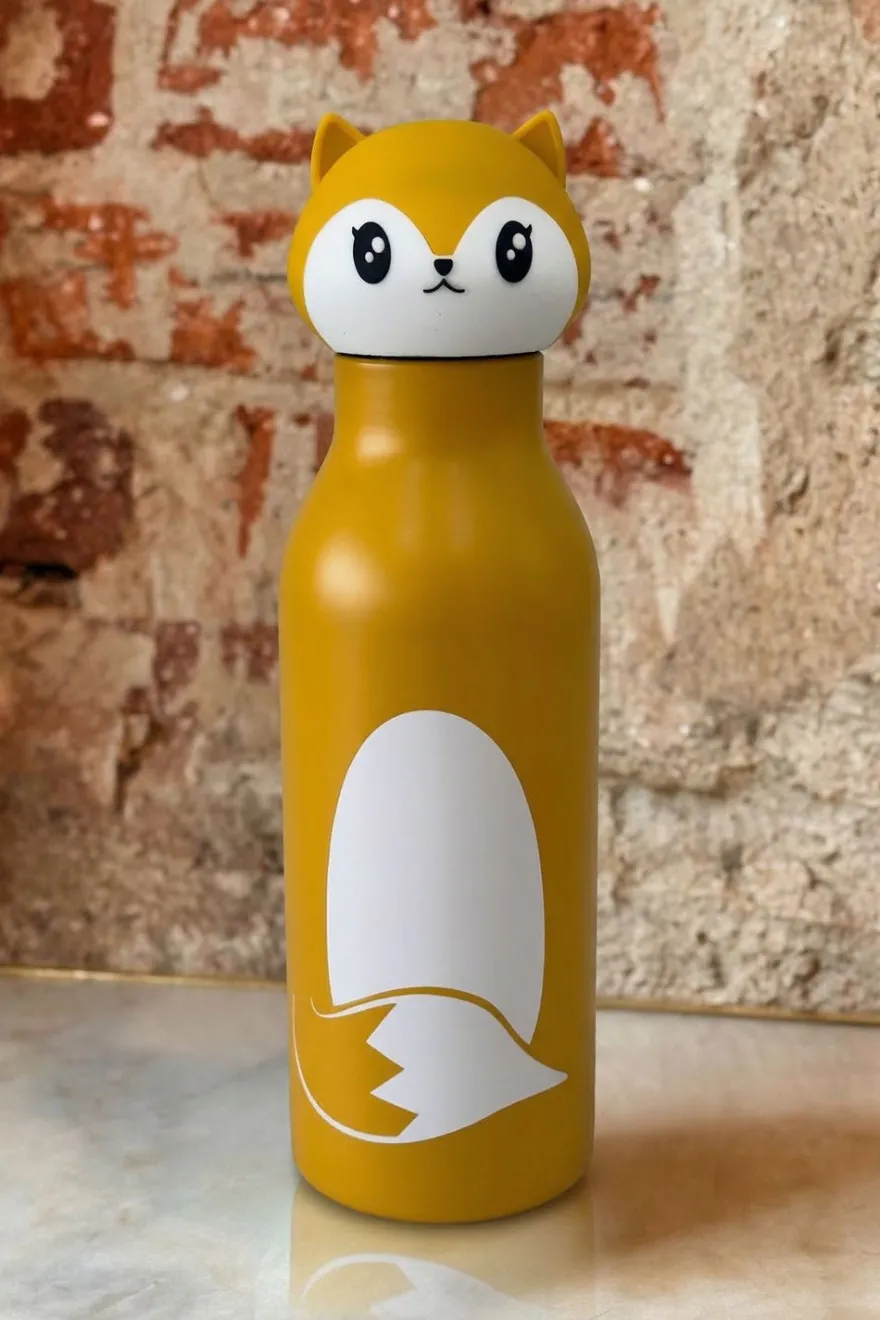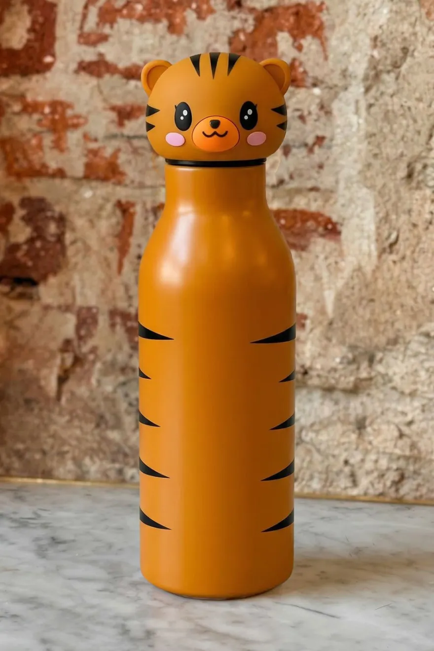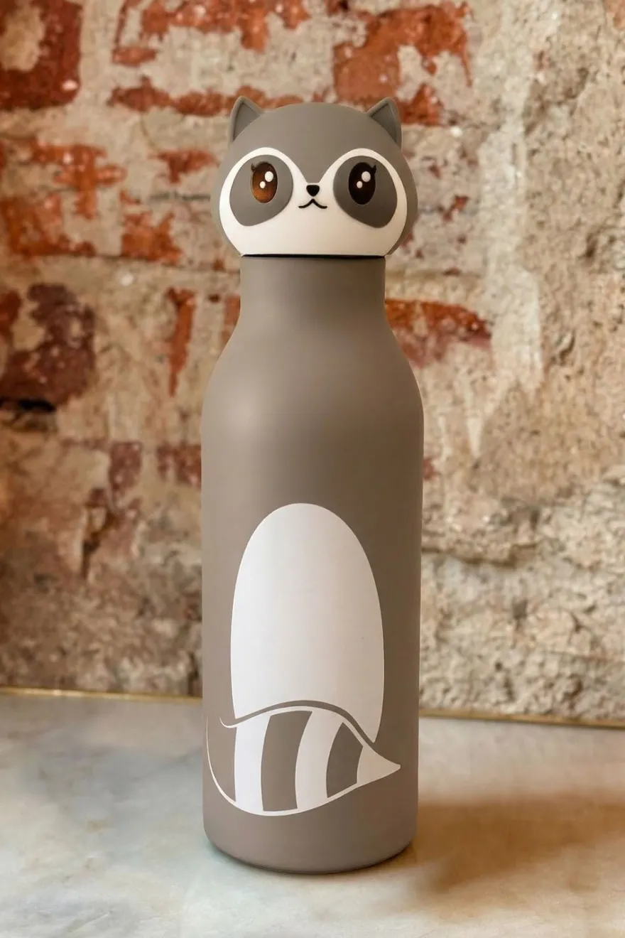 Botella isotérmica de acero inoxidable con diseño inspirado en animales: tigre, mapache o zorro (a elegir).