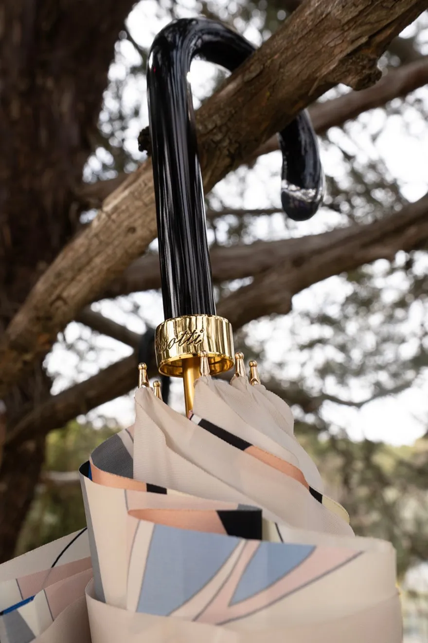 Pasotti se distingue por la creatividad y el estudio constante de los materiales, todos estrictamente italianos: latón esmaltado, maderas de calidad para las empuñaduras, decoraciones maravillosas… consiguiendo fabricar paraguas magníficos en cuanto a diseño, tejidos, decoraciones, empuñaduras.