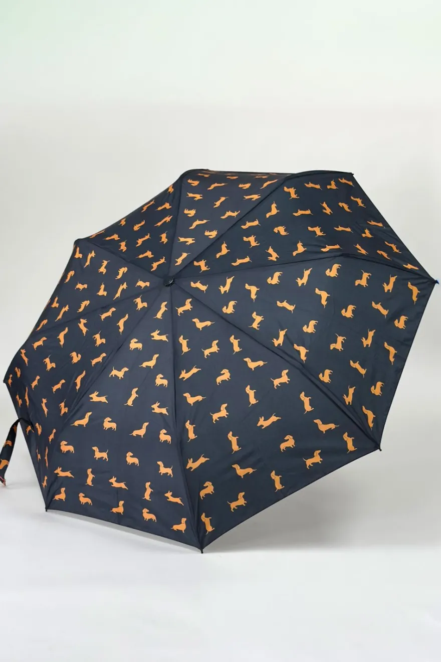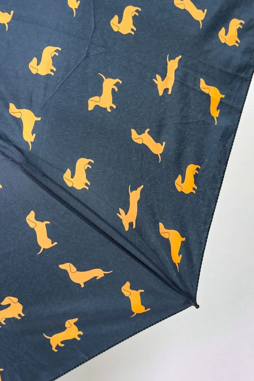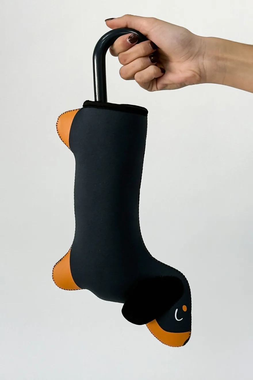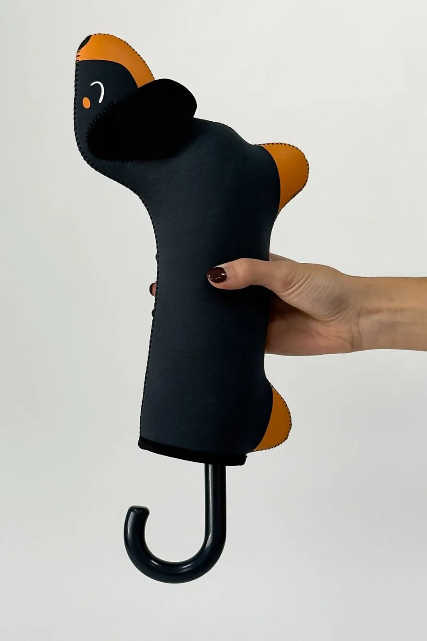 Paraguas con funda en forma de teckel y mango que simula la cola del perro, este paraguas combina diseño original, practicidad y encanto en un solo producto.