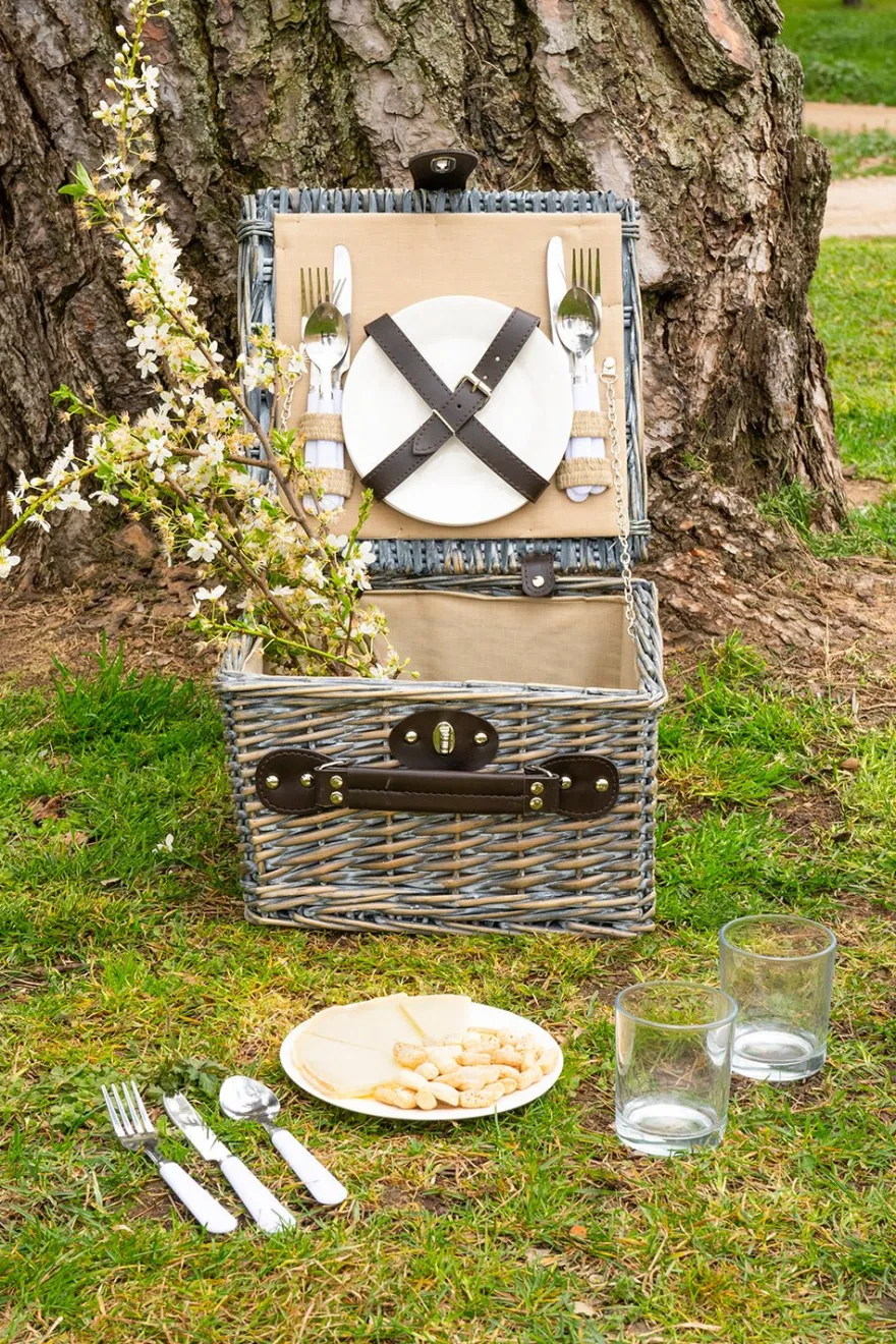 – Cesta de mimbre en color marrón para dos personas