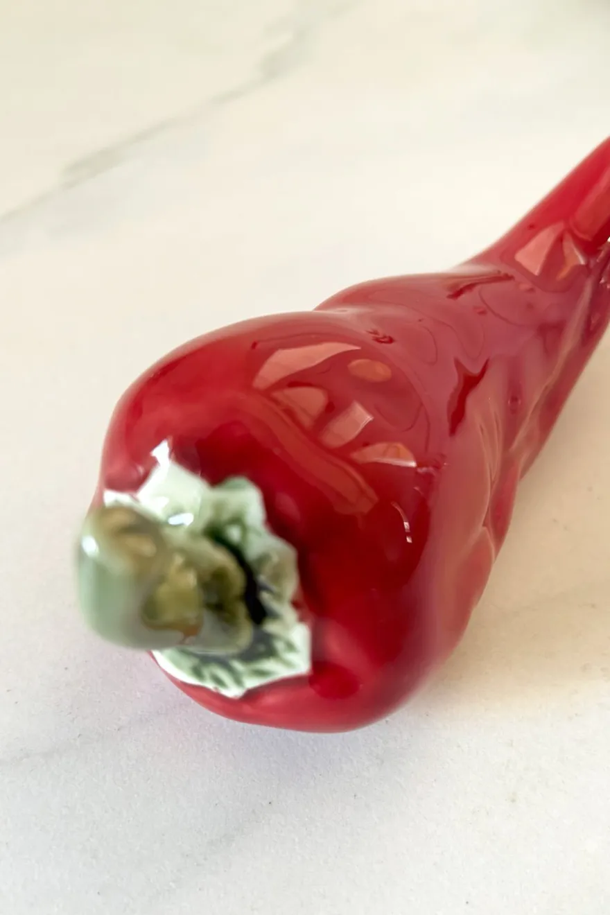 Adorno de loza fina esmaltado con diseño de chili, 100% artesanal, ideal para complementar y dar un toque fresco, original y diferente a cualquier rincón de casa.