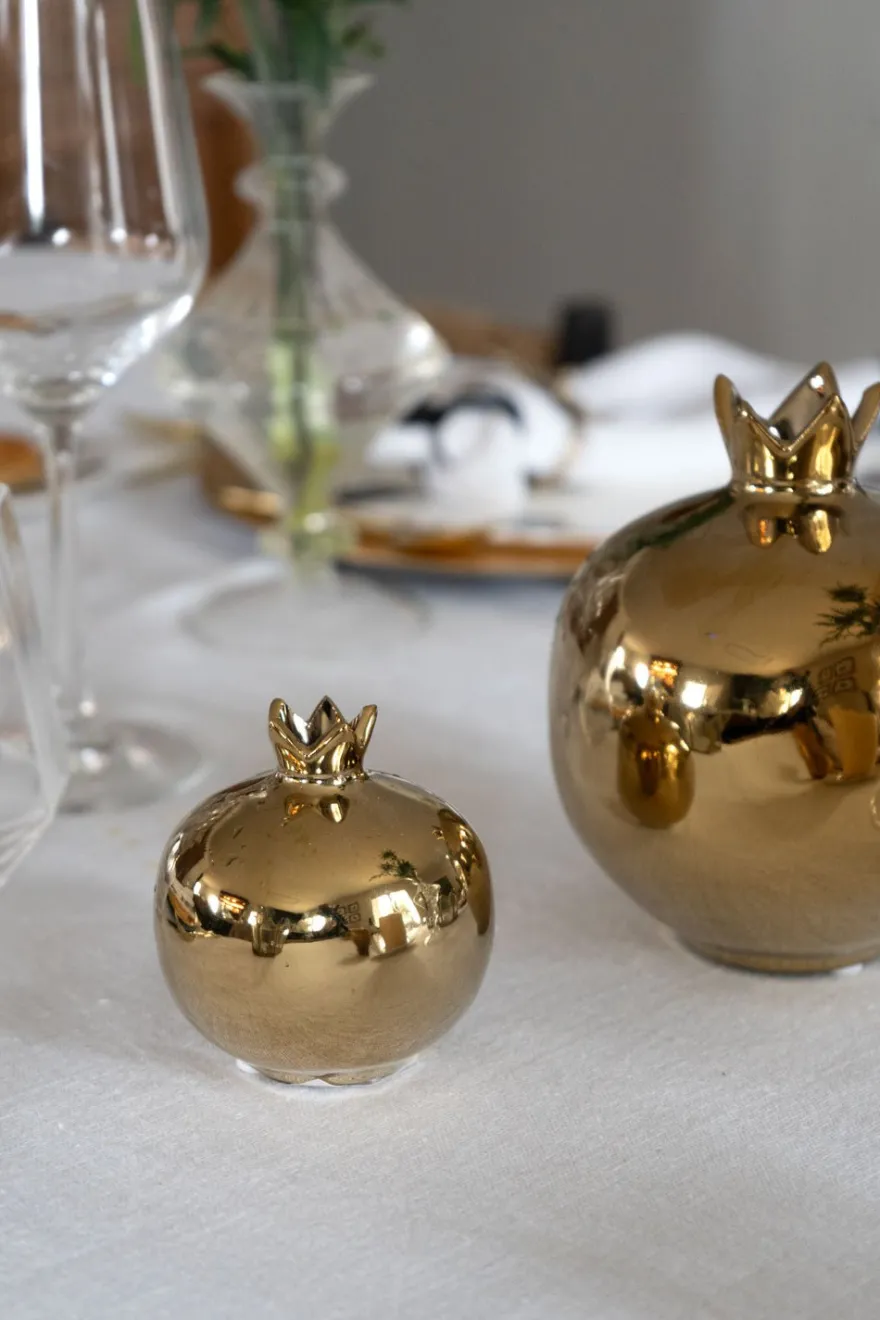 Granada decorativa de cerámica dorada, ideal para decorar cualquier rincón de tu casa durante las Navidades o en cualquier época del año.
